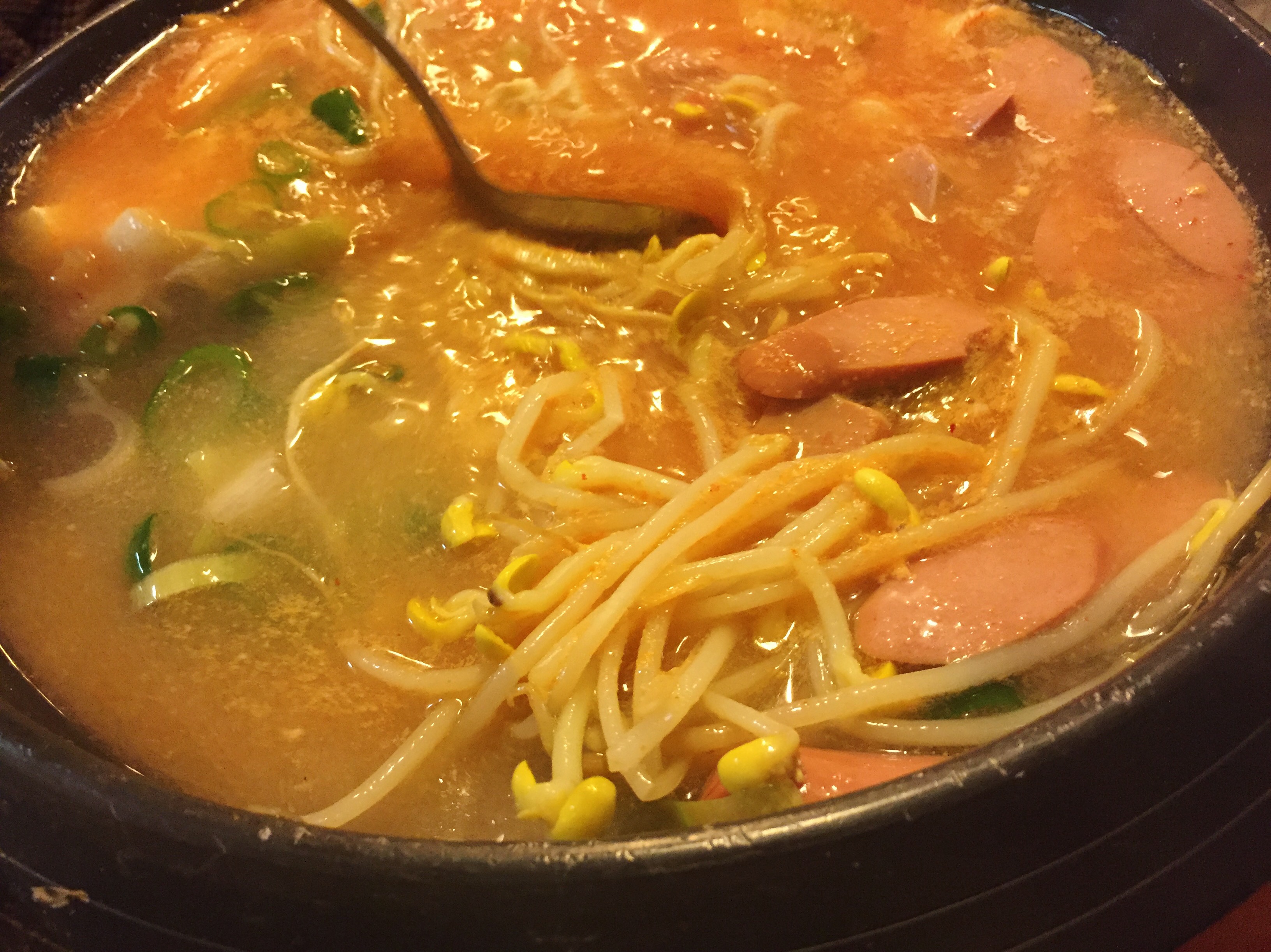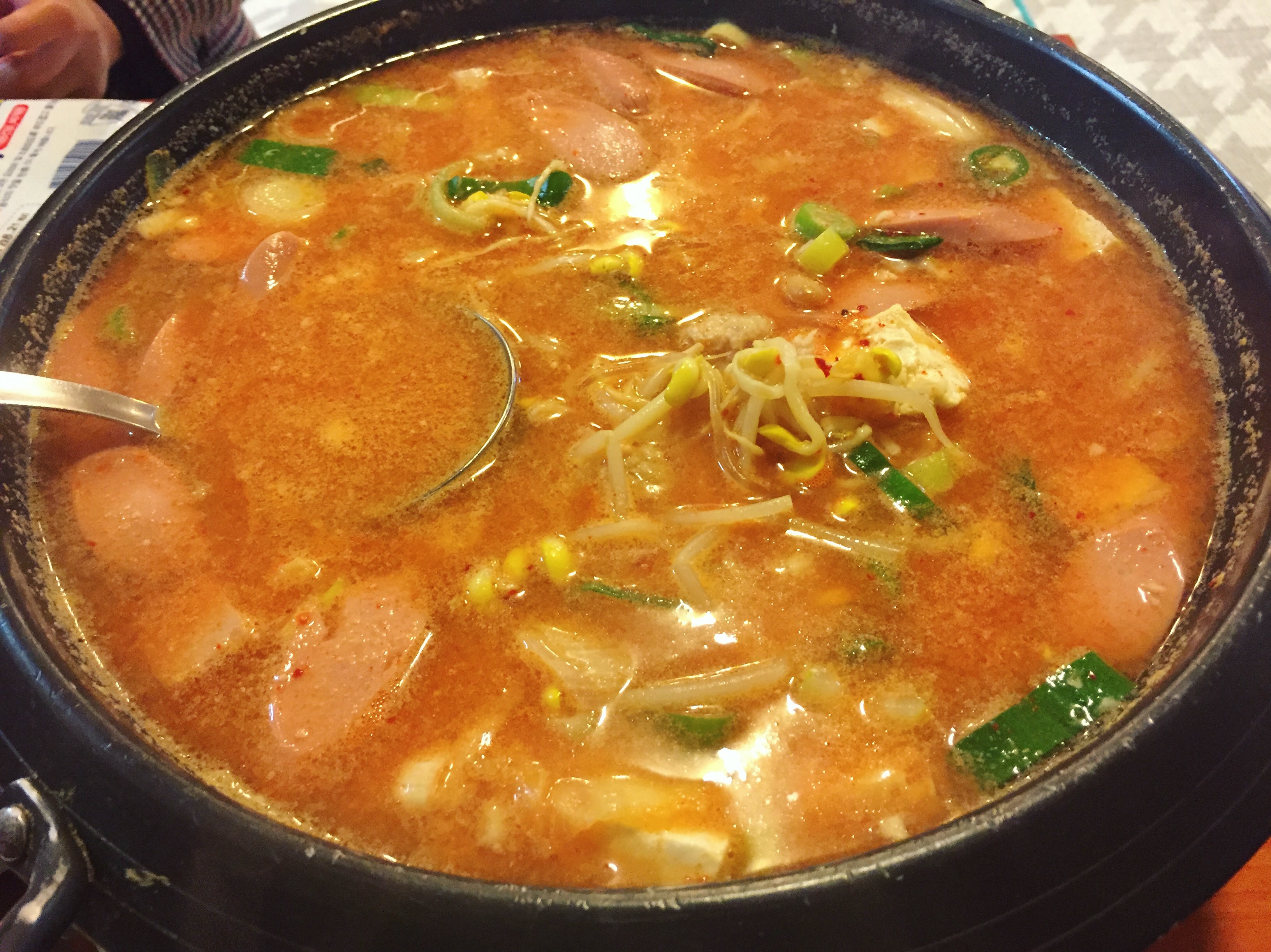 세 명이 자리잡고 앉아 벽에 붙은 메뉴판을 다 보기도 전에 주인 아저씨가 오셔서 “둘, 하나, 면사리 추가 맞냐”고 물으심ㅋㅋㅋ 물론 부대찌개 둘 돈까스 하나임 ^^