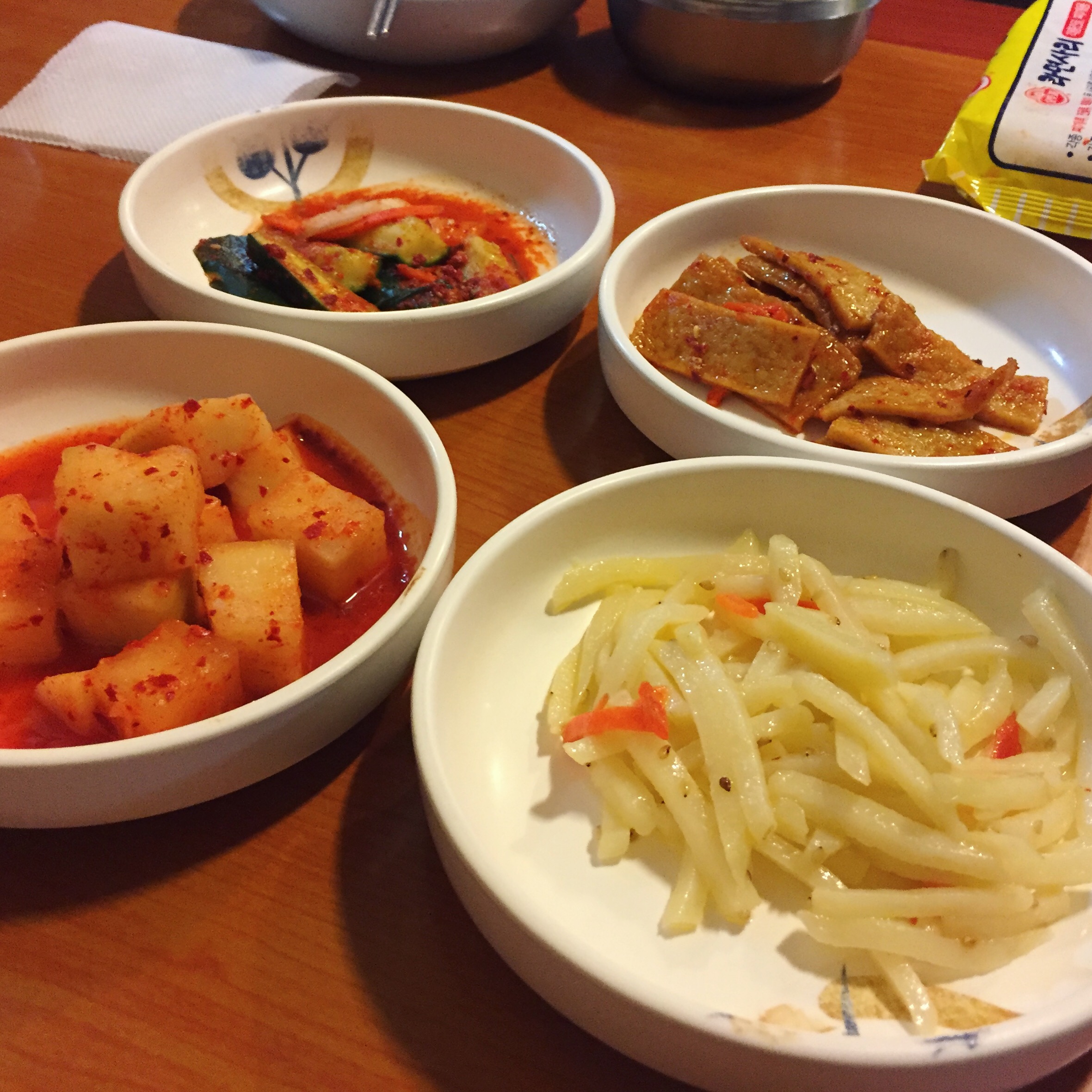 호산나의정부부대찌개의 기본반찬을 먹으며 돈까스와 부대찌개를 기다리는 중