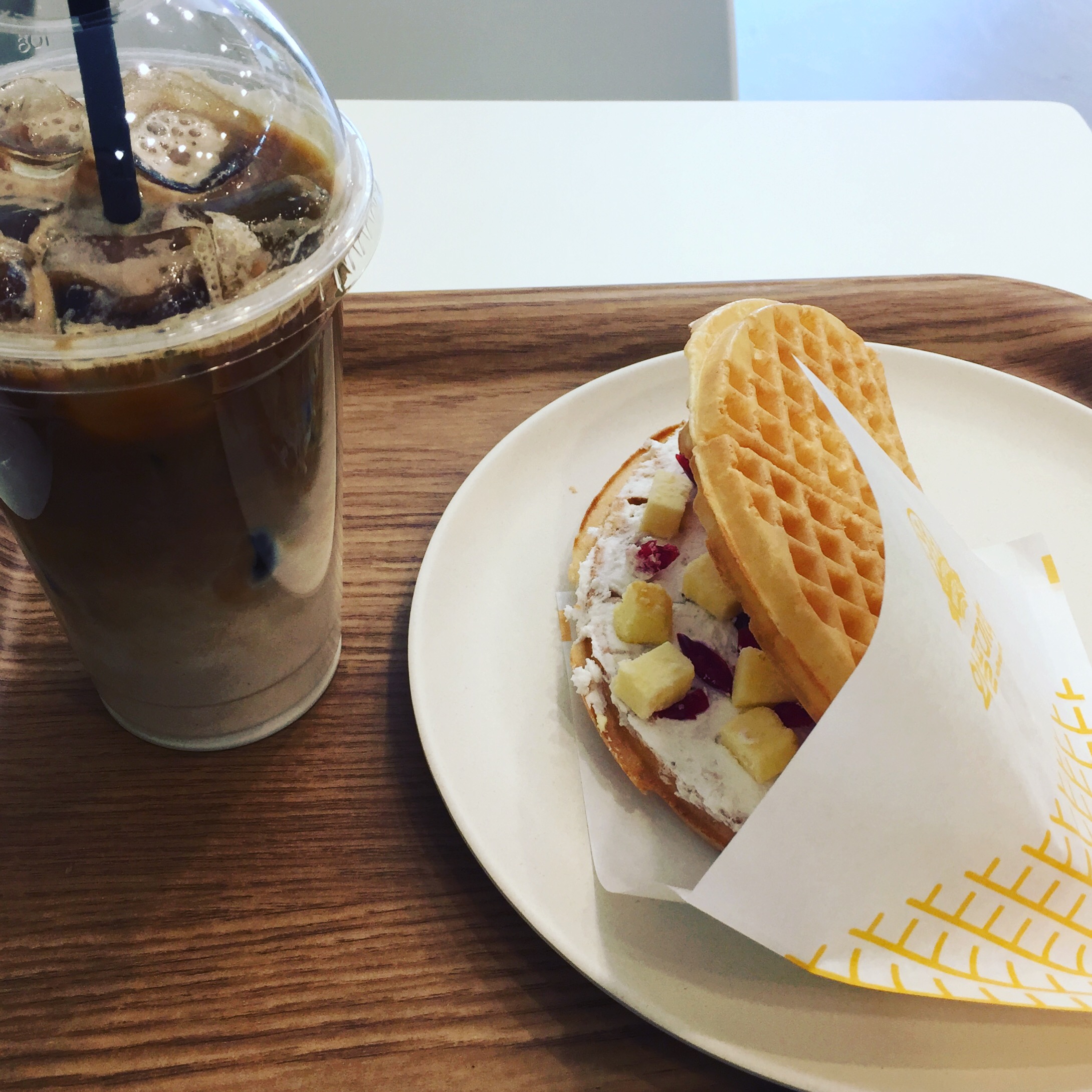 치즈케이크 크랜베리 와플과 아이스라떼를 주문했다.