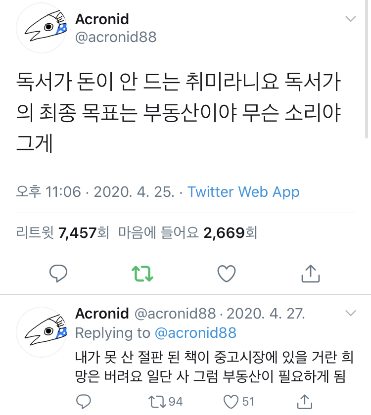 나는 책 뿐만 아니라 음반 찻잔 장난감 수집 취미까지 더해지니깐, 결국은 부동산 문제가 됨(...)