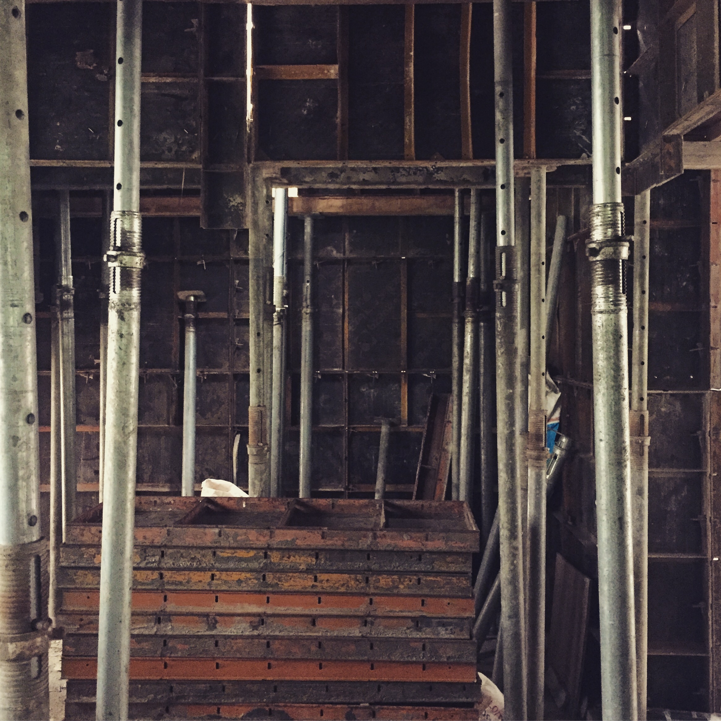 어둡고 군데군데 쇠파이프가 가득한 공사현장인데