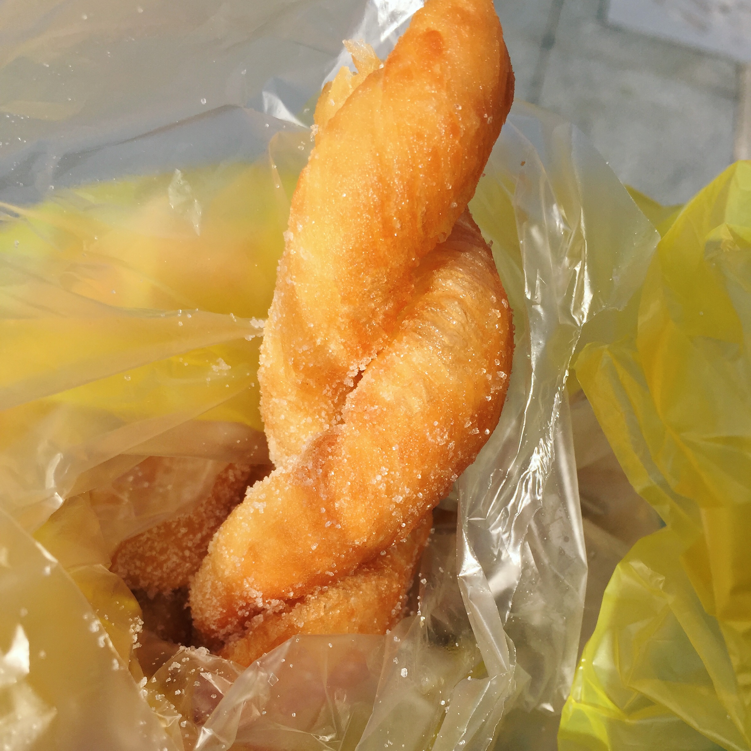 꽈배기를 구입하자 갓 튀겨낸 꽈배기에 설탕을 뿌려 봉지에 담아 주셨다.