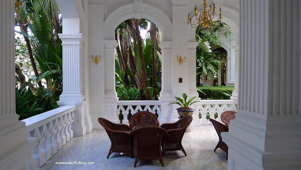 바로 옆 칼튼 호텔에 묵었기에 짬이 날때마다 래플스 호텔을 둘러보곤 했었다. (호텔 정원도 넓고 바도 있고 기념품점도 있고 카페도 있어서 숙박하지 않아도 구경할 게 많았다.) 콜로니얼 양식의 건축이 참 아름다웠다.