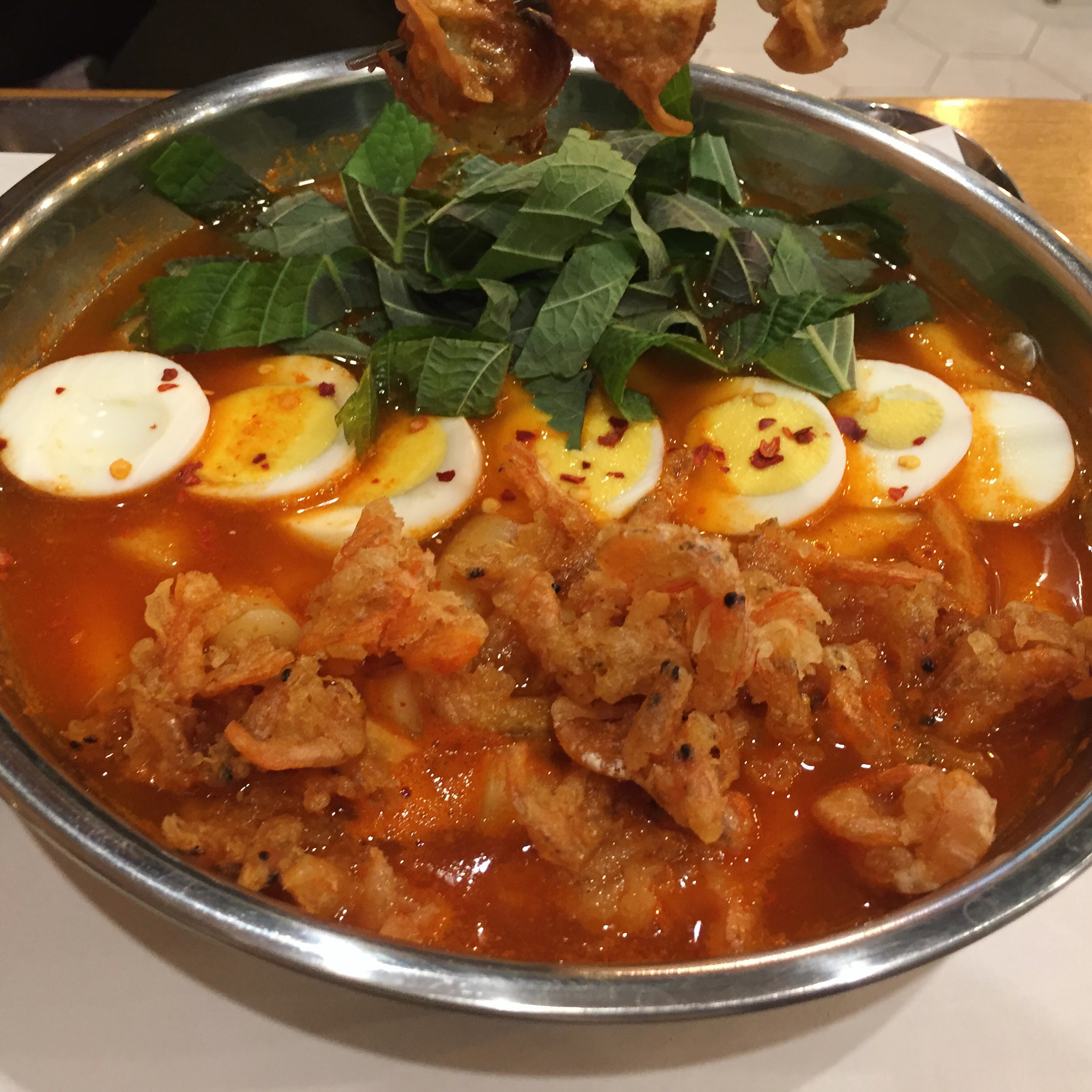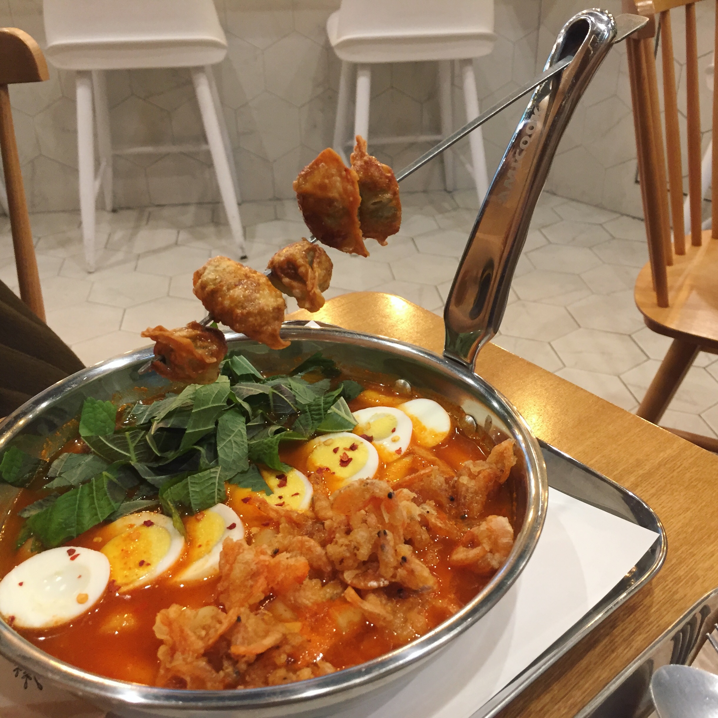친구가 추가한 튀김만두가 이렇게 대롱대롱 매달린 귀여운 모습으로 서빙돼서 엄청 마음에 들었음...^^