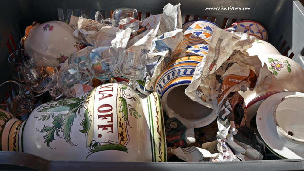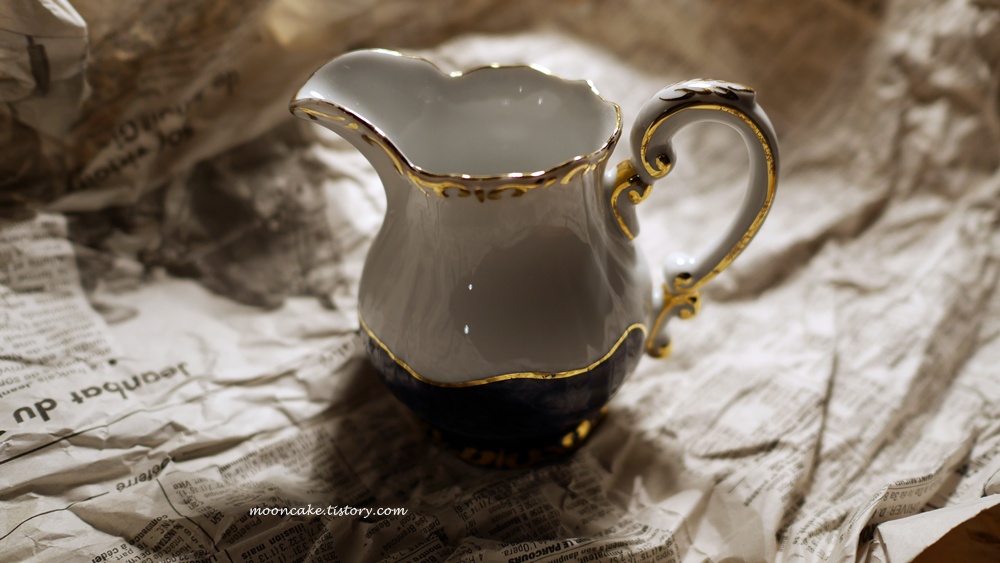원래는 4유로인가 5유로 정도 했던 것 같은데 포장하기 전에 그릇 위 아래 테두리를 손가락으로 한번 훑어 보시더만 흠이 있다고 말씀하시는 거다. "앗! 그러면 깍아주세요^^" 라고 했더니 그분이 "아니 공짜로 줄께요^^" 라고 하셔서 공짜로 얻어왔다는 훈훈한 사연! 공짜로 주시는 건데도 신문지로 여러겹 단단하게 포장도 해주셨다. 내 입장에선 아랫 굽에 좀 큰 칩이 있긴 하지만 어차피 실사용 할 건 아니라 큰 상관은 없었다. 벼룩시장에서 이렇게 꼼꼼히 체크하는 판매자도 처음이었고, 내가 못알아챘으니 그냥 팔거나 아님 내 말마따나 1~2유로 깍아서 팔았어도 되는데 공짜로 안겨주다니 대인배셨음ㅎㅎ