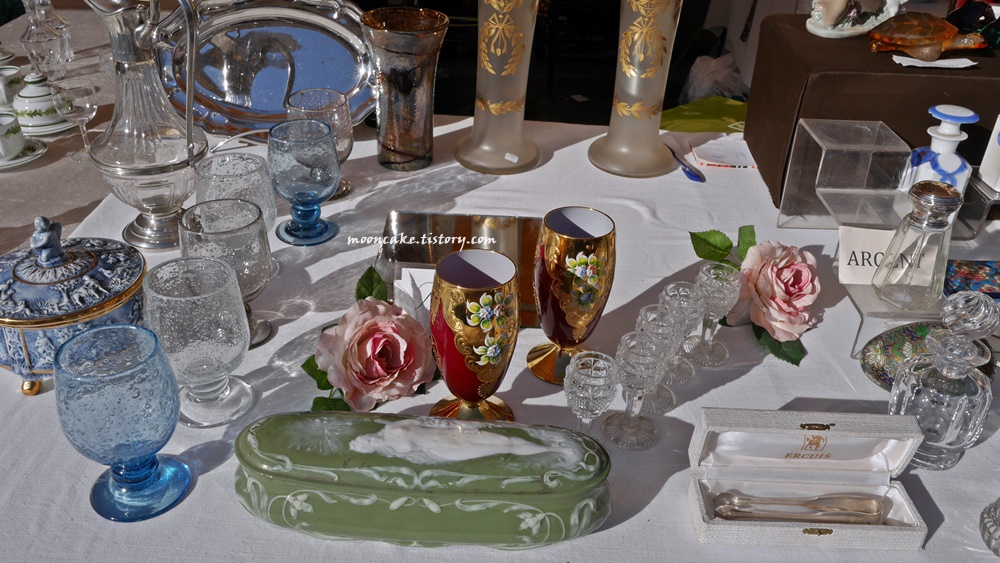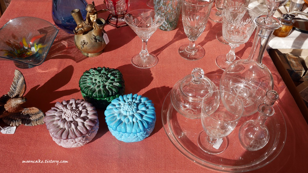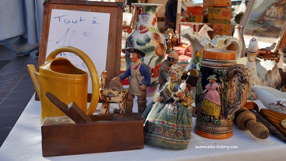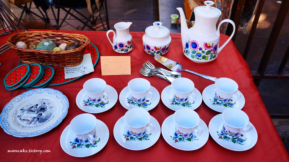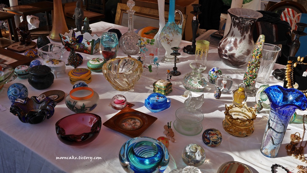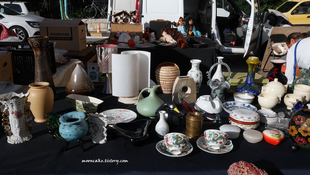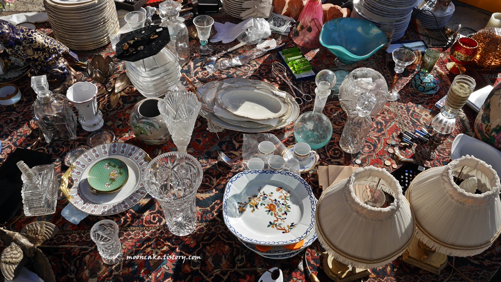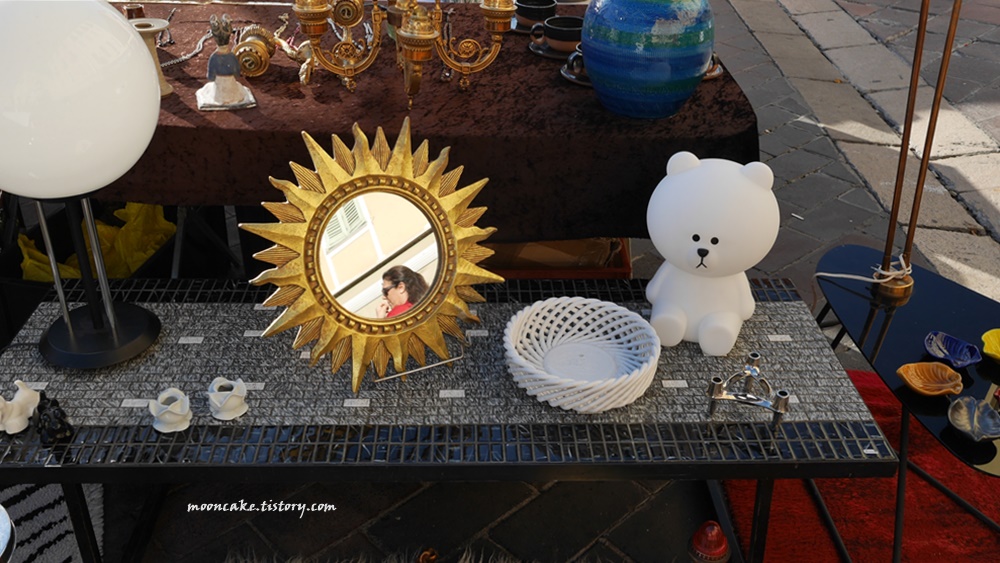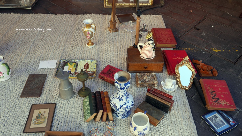 물론 그들 입장도 이해가 감. 왜냐면 사진 찍는 사람들은 대개 물건을 안사고 사진만 찍어서, 매출엔 도움이 안되고 걸리적거리기만 하는 존재이기 때문에..... 그래서 나도 보통 눈치 보면서 멀찍이서 찍거나 아님 물건을 구입하게 된 가게의 사진만 열심히 찍는 편인데, 니스 벼룩시장 같은 경우는 시간이 워낙 촉박했기 때문에 나중에 사진이라도 보고 싶어서 사진을 좀 많이 찍긴 했음;;;