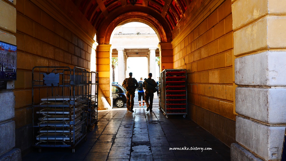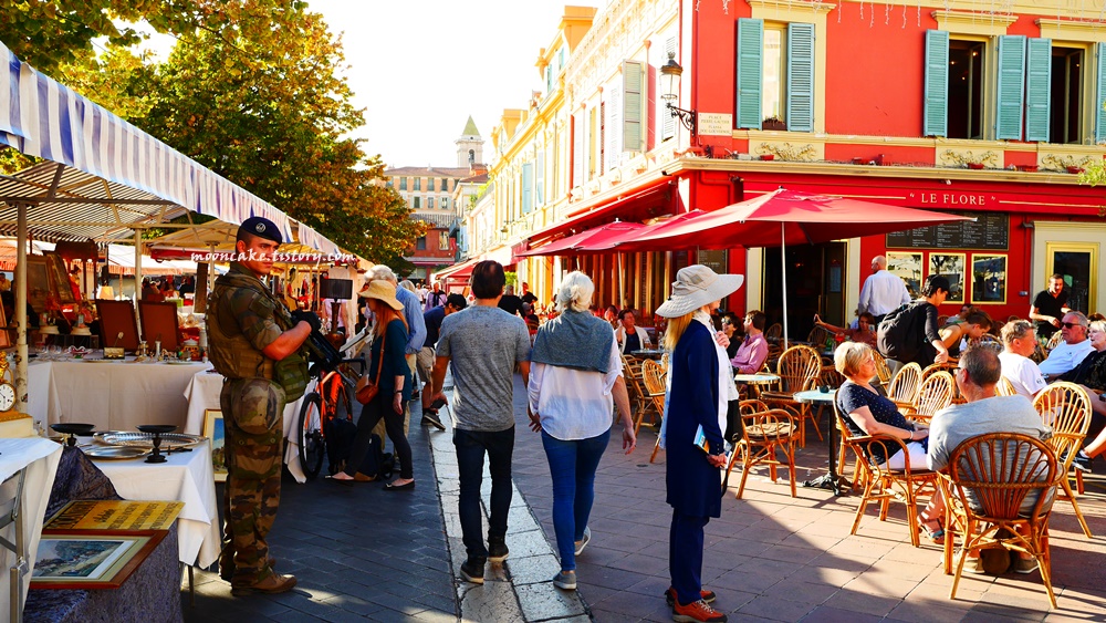 IS 테러 위협이 고조된 이후 유럽 여행을 가면 대성당 등지에 군인과 경찰이 배치되어 있는 건 흔한 풍경이었지만, 니스는 워낙 큰 테러가 있어서 그랬는지 작은 골목 안쪽까지도 군인들이 순찰을 돌고 있었다. 특히 벼룩시장에도 중무장한 군인분들이 많아서 살벌한 느낌이 들었다. 평소에 죄 짓고 살진 않는데도 이런 분들 보면 괜히 좀 긴장됨;;