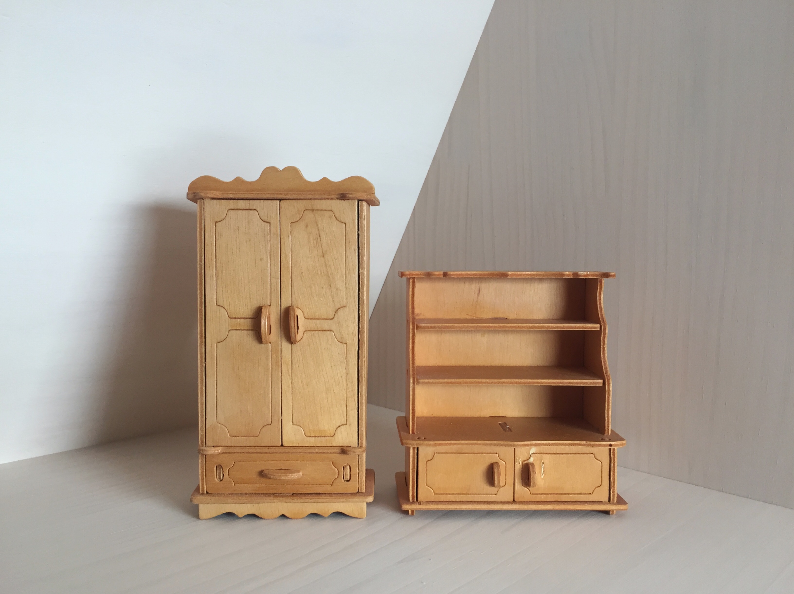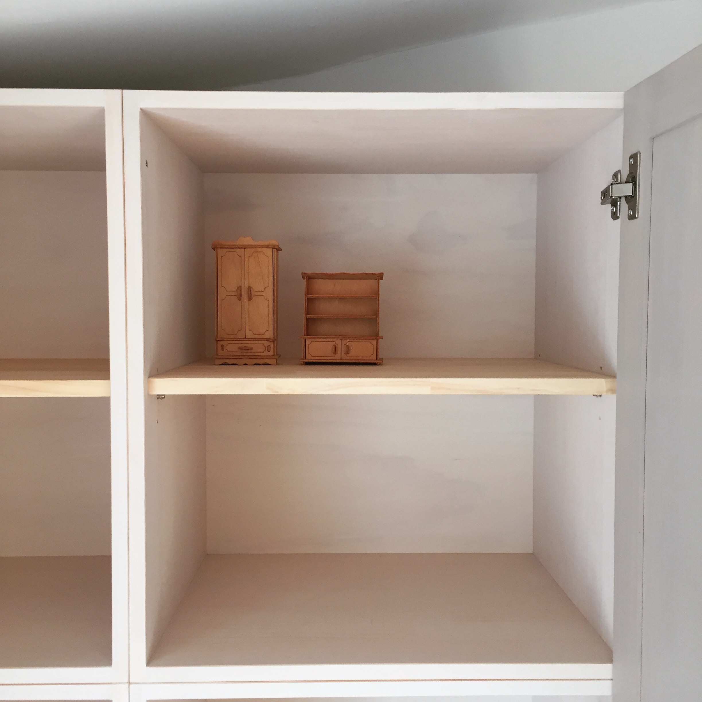 위 사진은 다락의 문달린 책장. 미니어쳐 가구 두 개를 가져다 놓았다.