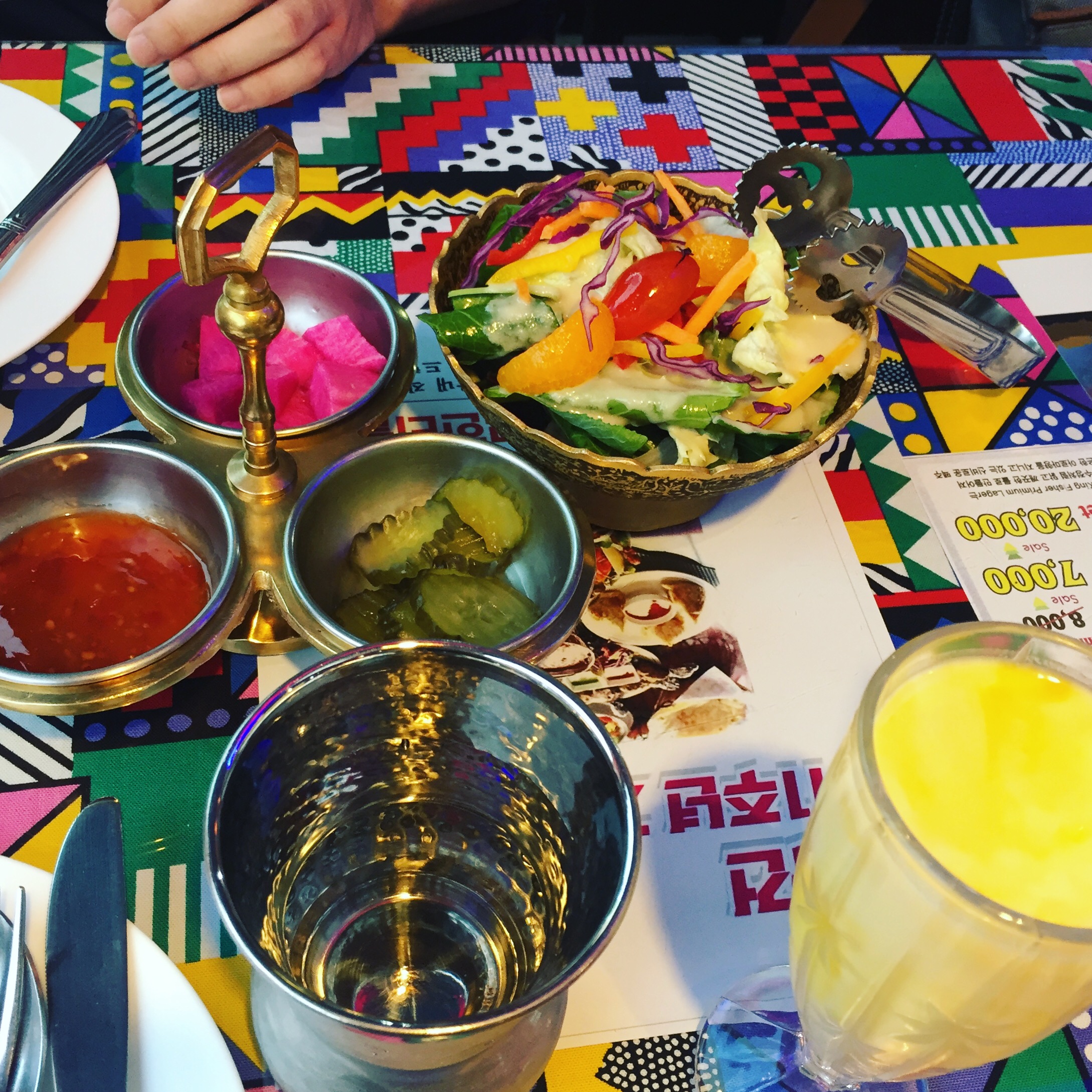 그린샐러드와 피클이 담겨 나온 이국적인 그릇들이 마음에 듬 : )