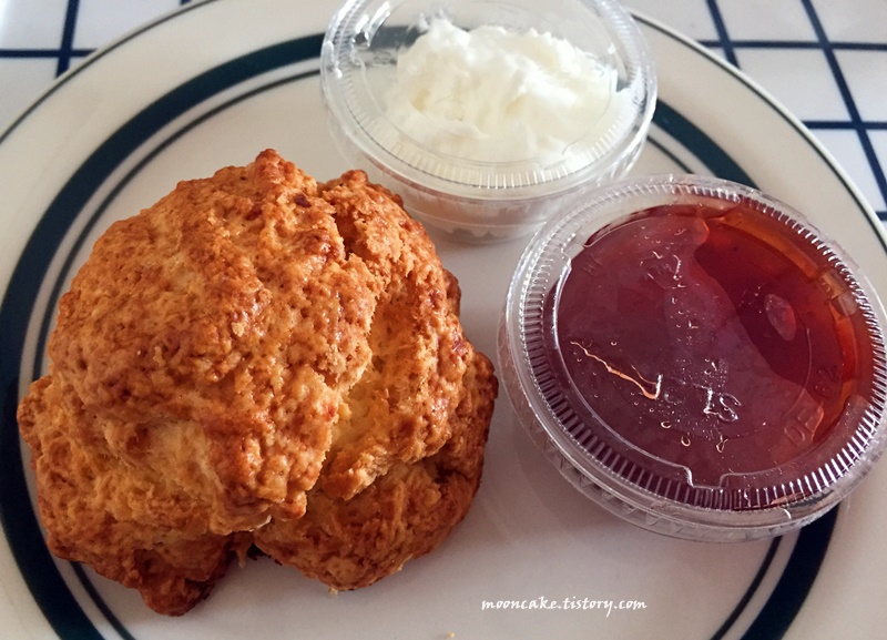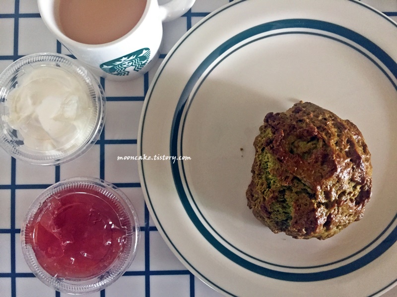배달금액 맞추기 위해 같이 주문한 스콘. 이번엔 말차스콘 말고 일반 스콘으로 주문했는데, 전에 먹었던 말차스콘 처럼 이 스콘도 많이 퍽퍽했다. 전반적으로 스콘에 대한 평은 좋은 편이라, 내 입맛이 독특한 것일 수도 있음.