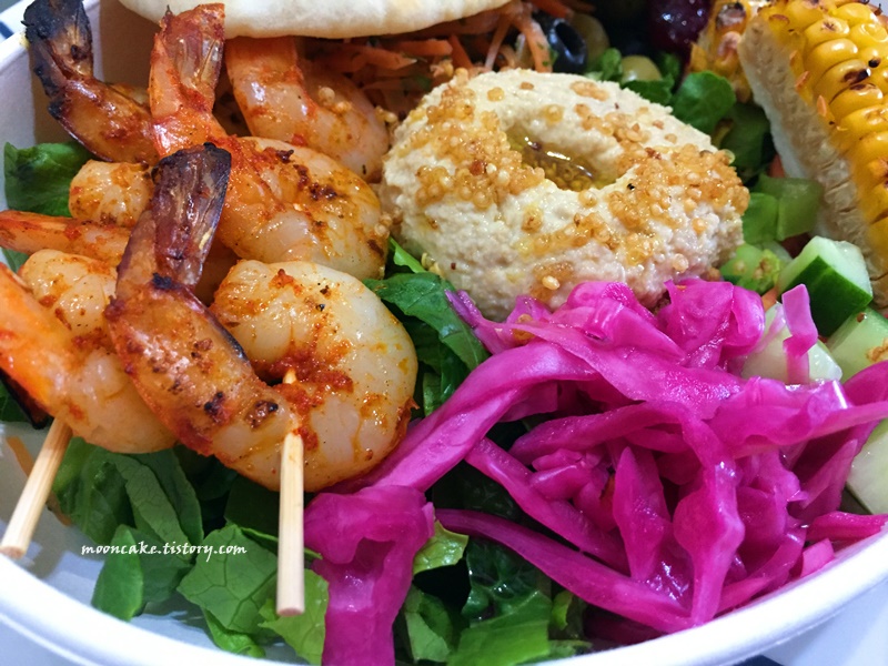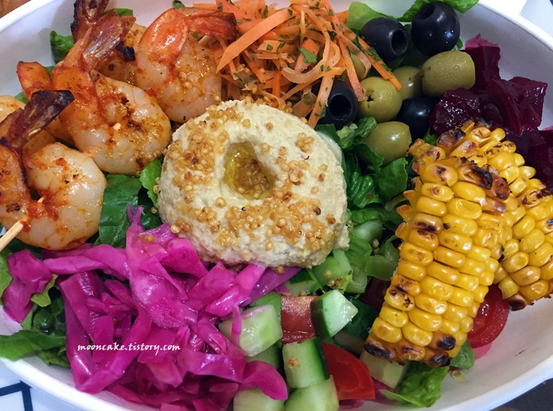 오믈렛 샐러드와 다른 재료는 다 같고, 메인 재료만 다르다. 여기서 파는 다른 샐러드(아보카도 샐러드, 치킨 샐러드, 큐브 스테이크 샐러드)가 다 그런 것 같다. 이전에 먹었던 오믈렛 샐러드는 정말 천국의 맛이었는데 타코 슈림프 샐러드는 처음처럼 맛있진 않았음... 그 이유는 아마도, 오믈렛 샐러드가 왔을때는 오믈렛도 난도 따끈따끈했는데 타코 슈림프 샐러드는 새우도 난도 식은 상태로 배달되었기 떄문인 것 같다. 배달에 걸린 시간은 비슷한데 아마 날이 급격히 추워진 탓인 듯 ㅠ.ㅠ