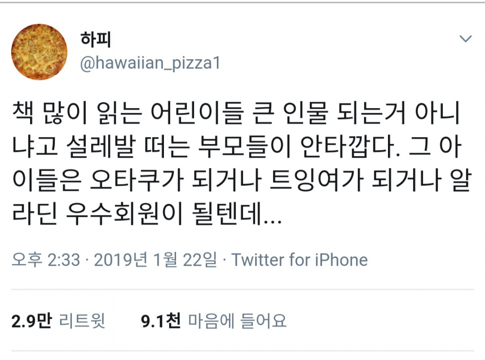 이거 보고 완전 빵터짐. 어린 시절 완전 책벌레였던 나. 그런 나를 특히 아빠가 자랑스럽게 여겼는데 현재는... 트잉여는 아니지만 활자중독에다가 오타쿠도 맞고 지금은 아니지만 꽤 오래 YES24와 교보문고 우수회원이었던 자로써 할말이 없다. 엄마아빠 미안~!