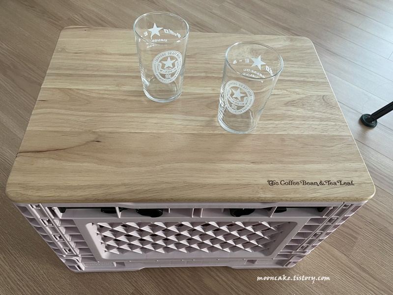 커피빈 폴딩박스는 나무 상판이 제법 튼튼하고 견고해서 마음에 든다. 그 위에는 나고야 주류 상점에서 개당 300원 주고 사온 삿포로 맥주잔을 올려보았다. 맥주잔이지만 맥주보다는 왠지 여름에 보리차나 오렌지주스를 따라 마시는 게 더 잘 어울릴 것 같은 느낌의 유리잔이다. (오렌지주스도 진짜 오렌지주스보다는 Tang같은 가루 주스가 더 잘 맞을 것 같다ㅎㅎ 정작 가루 주스는 마셔보지도 못했는데 말이지^^)