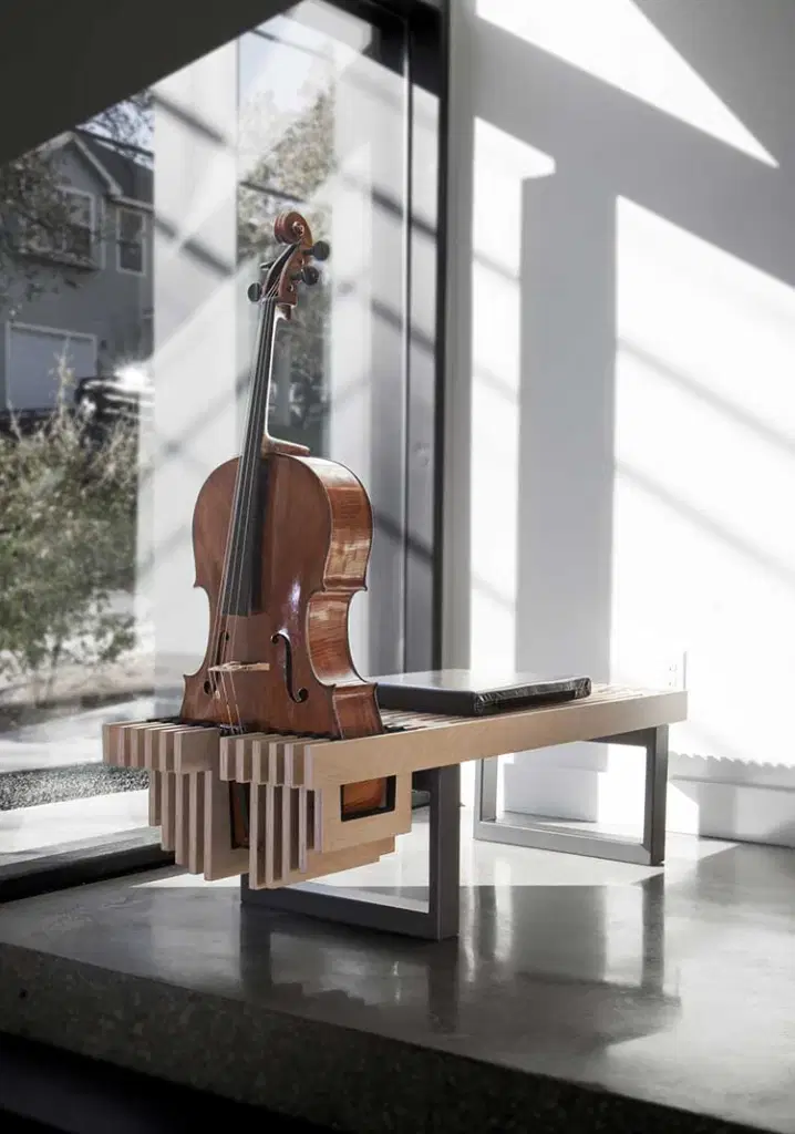Cello Bench is a design fabrication shop in Austin Texas that sells handcrafted cello and guitar benches.