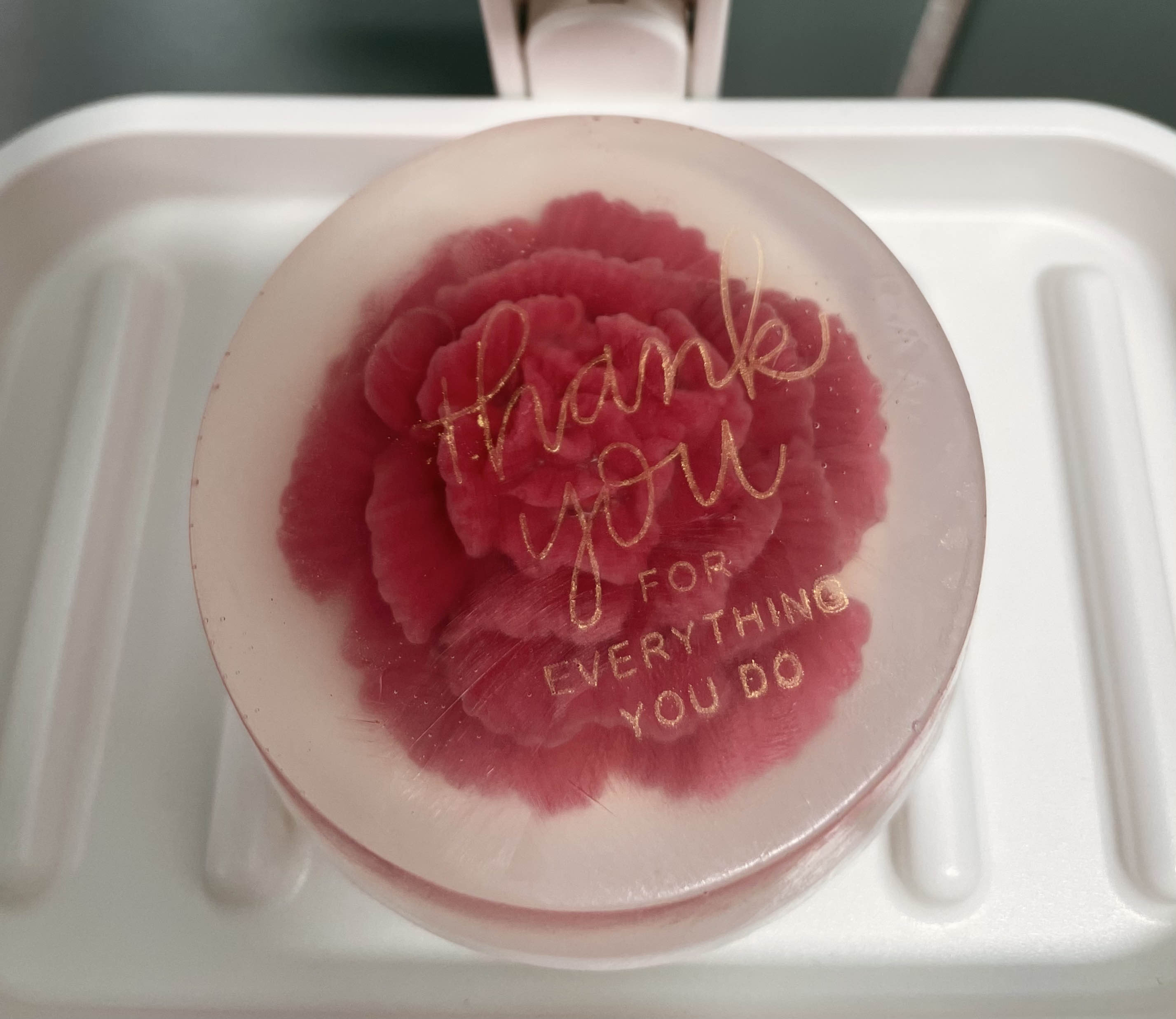 근데 내 화장실에 이케아에서 사온 비누 받침대를 설치하고 엄마에게 비누를 달라고 했더니, 새 비누가 다 떨어졌다고 대신 내어 주신 비누가 이거다ㅋㅋㅋㅋ 왠지 부담스러운 카네이션 비누.