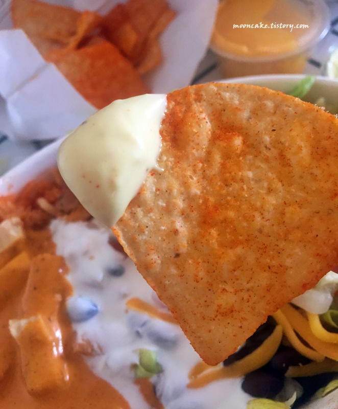개인적으로 타코벨의 나쵸칩은 치즈 소스랑 먹는 것보다는 페퍼잭 소스랑 먹는 게 훨씬 맛있다. 치즈 소스도 그 자체로는 괜찮은데, 타코벨 나쵸칩과의 궁합은 별로라고 생각한다. 느끼하고 뭔가 겉도는 맛이 있다. (하지만 나만 그렇게 생각하는 게 틀림없다. 타코벨에선 계속 치즈 나쵸칩을 팔고 있고 사람들도 좋아하니깐 ㅋㅋ) 여튼 기회가 되시면 페퍼잭 치즈 소스에 나쵸를 찍어 드셔 보시라. 일반 치즈 소스보다 훨씬 상큼하고 맛의 조화가 좋음 ^^
