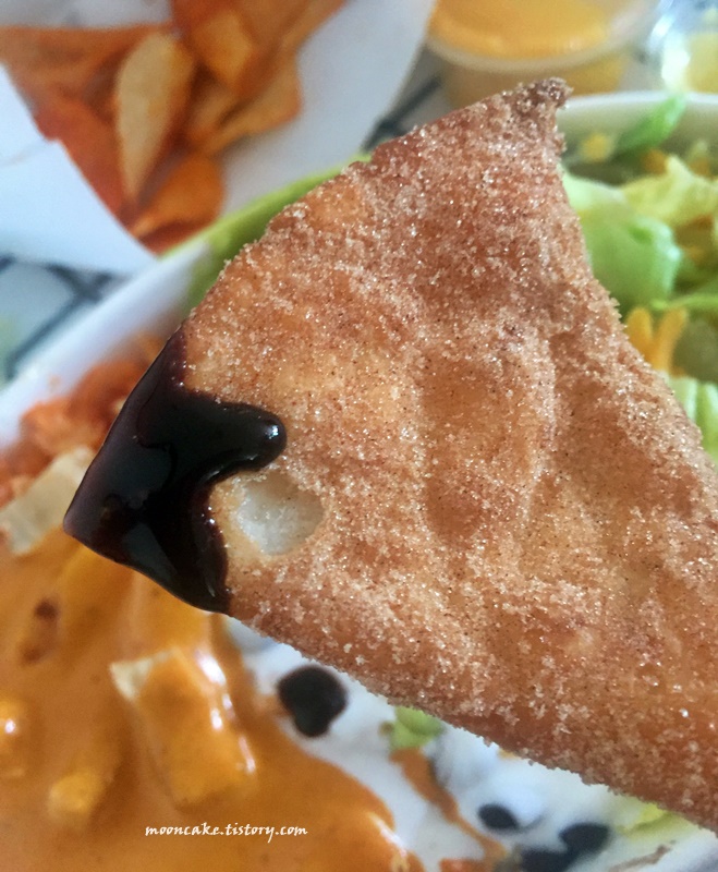 타코벨에서 브리또 보울 다음으로 좋아하는 메뉴는 시나몬 토스타다. 하지만 자주 먹지는 않는다. 평소에 건강 생각해서 음식 가리는 스타일은 아닌데도 이건 왠지 자주 먹으면 안될 것 같다ㅋㅋㅋㅋ 그래도 갓 튀겨낸 향기롭고 달콤한 시나몬 토스타다를 진한 초콜릿 소스에 찍어서 한 입 먹을때는 참 행복하다 :)