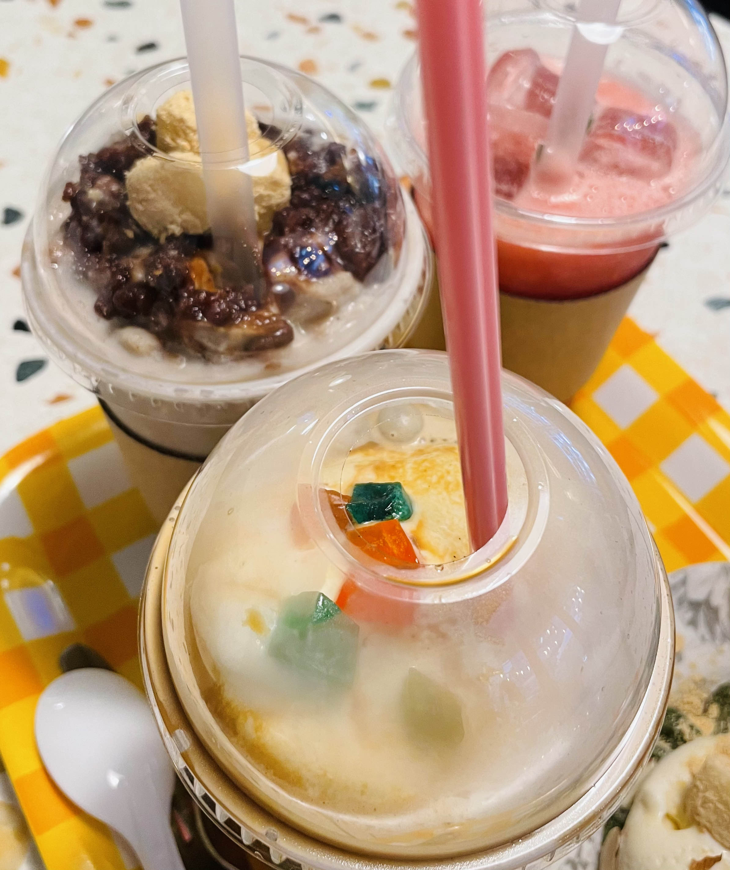 수박 주스, 팥절미 스무디, 보석 라떼.