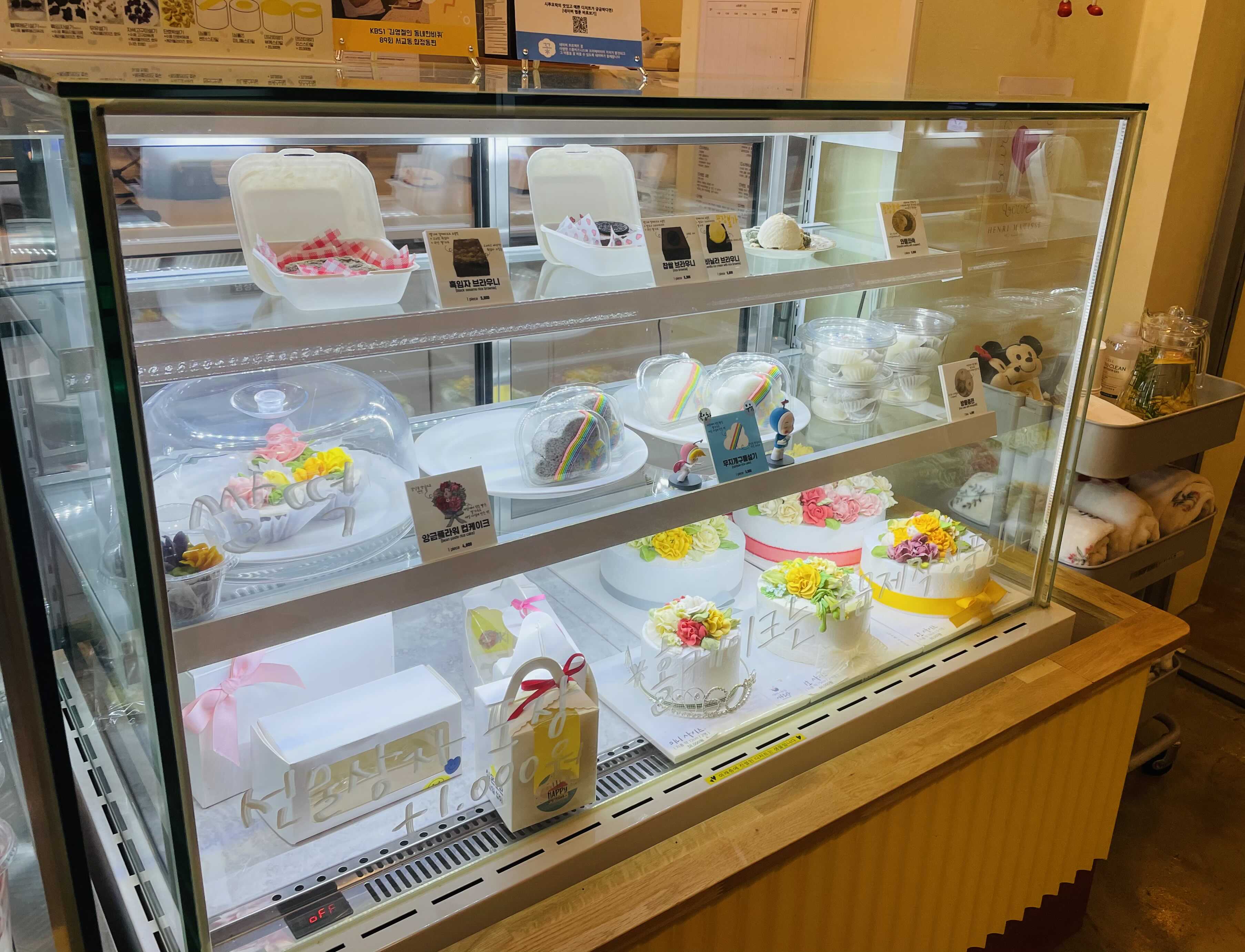 배부르게 밥 먹고 간 곳이라 디저트를 먹고 싶은 생각은 없었지만 음료만 마시긴 아쉬웠던지 친구가 와플와쑥을 골랐다. 나는 앙금플라워컵케이크나 무지개구름설기가 예뻐 보여서, 밥 안먹고 갔으면 같이 주문했을 듯ㅎㅎ