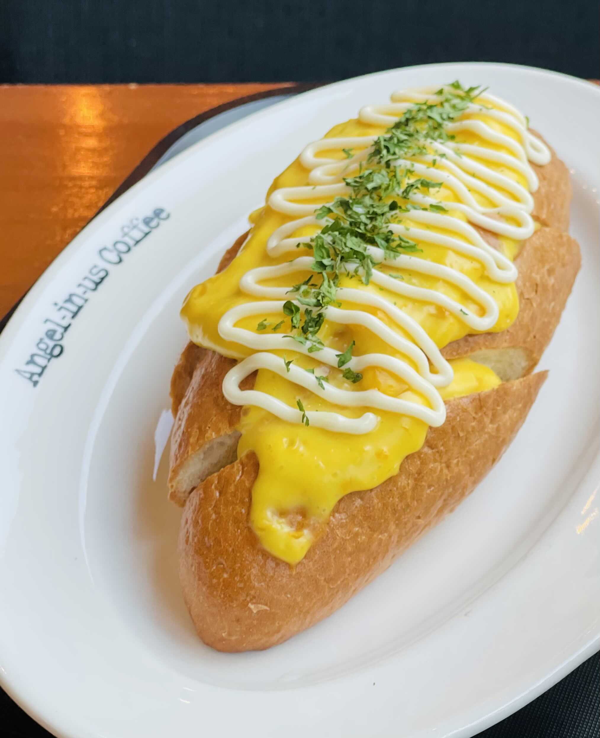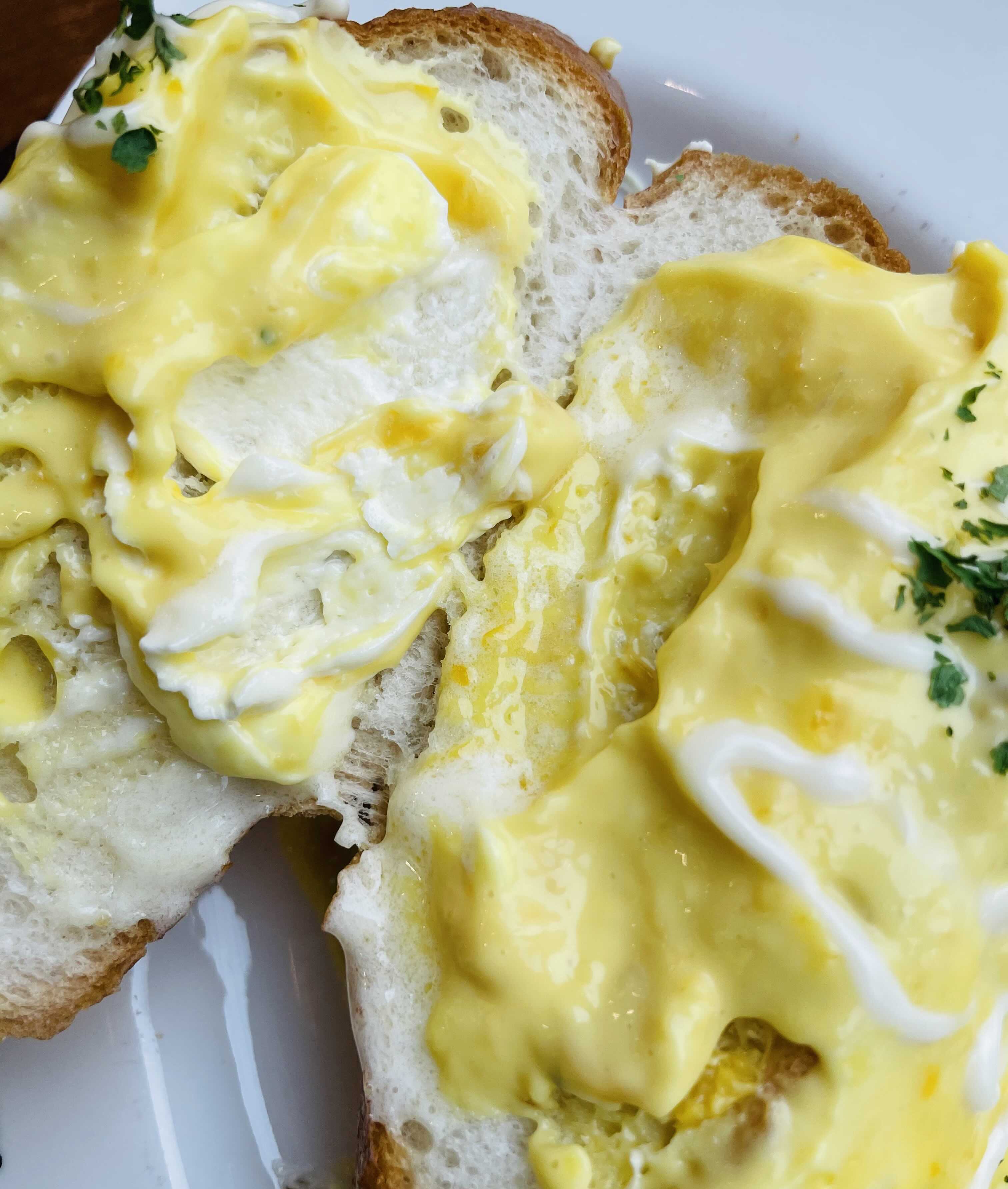 반미(베트남 쌀 바게뜨) 위에 크림을 잔뜩 얹었다.
