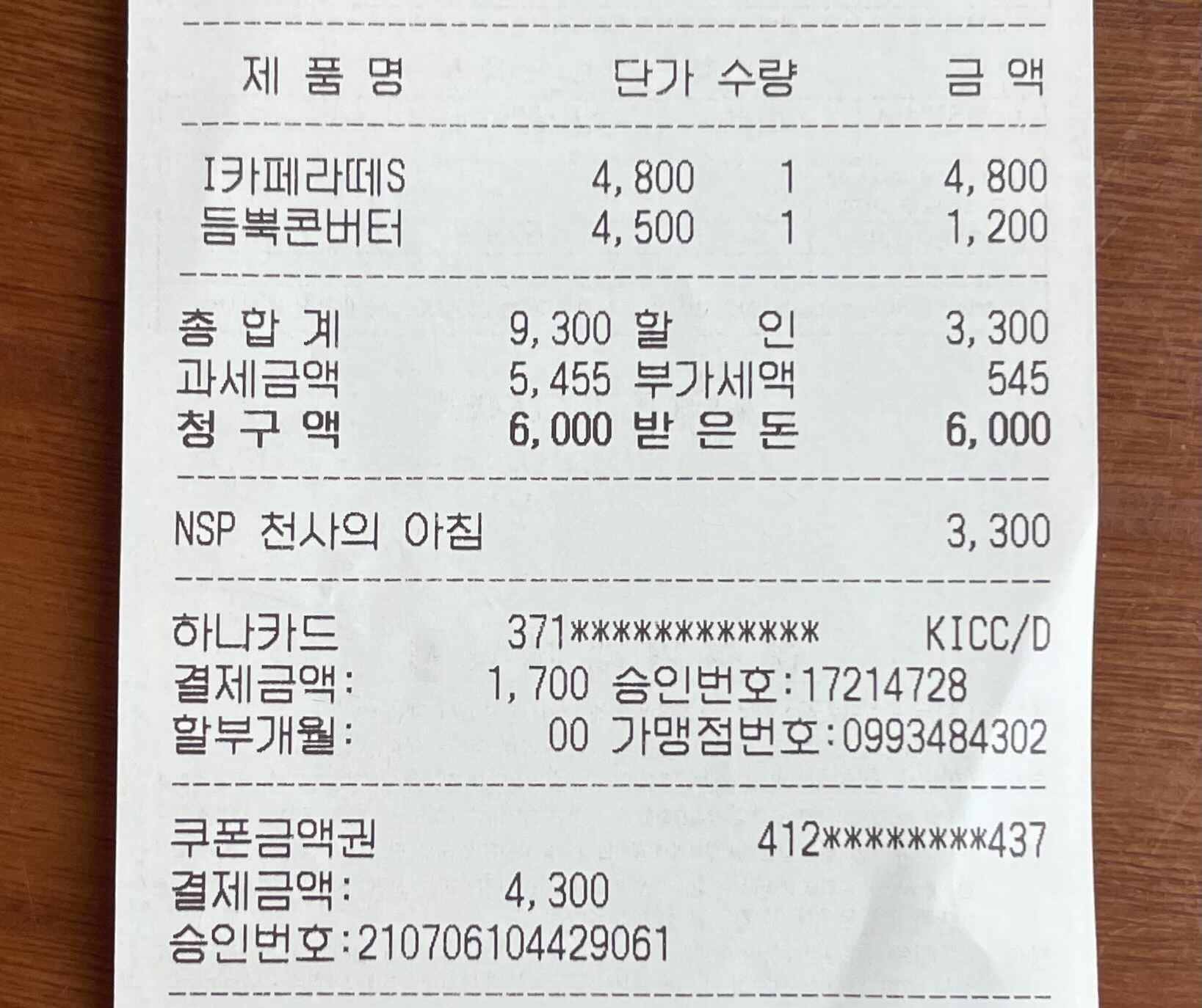 마침 건강검진 기관 근처에 엔제리너스가 있길래, 기간 만료 전에 기프티콘을 쓸 수 있었다. 원랜 라떼랑 반미 샌드위치를 먹으려고 했는데 아침 할인 메뉴가 있길래 그걸로 주문해서 최종 1,700원에 아침을 먹었다. 큰 돈은 막 쓰면서 왜 이런 작은 절약은 이리도 뿌듯한 걸까...ㅋㅋㅋㅋ