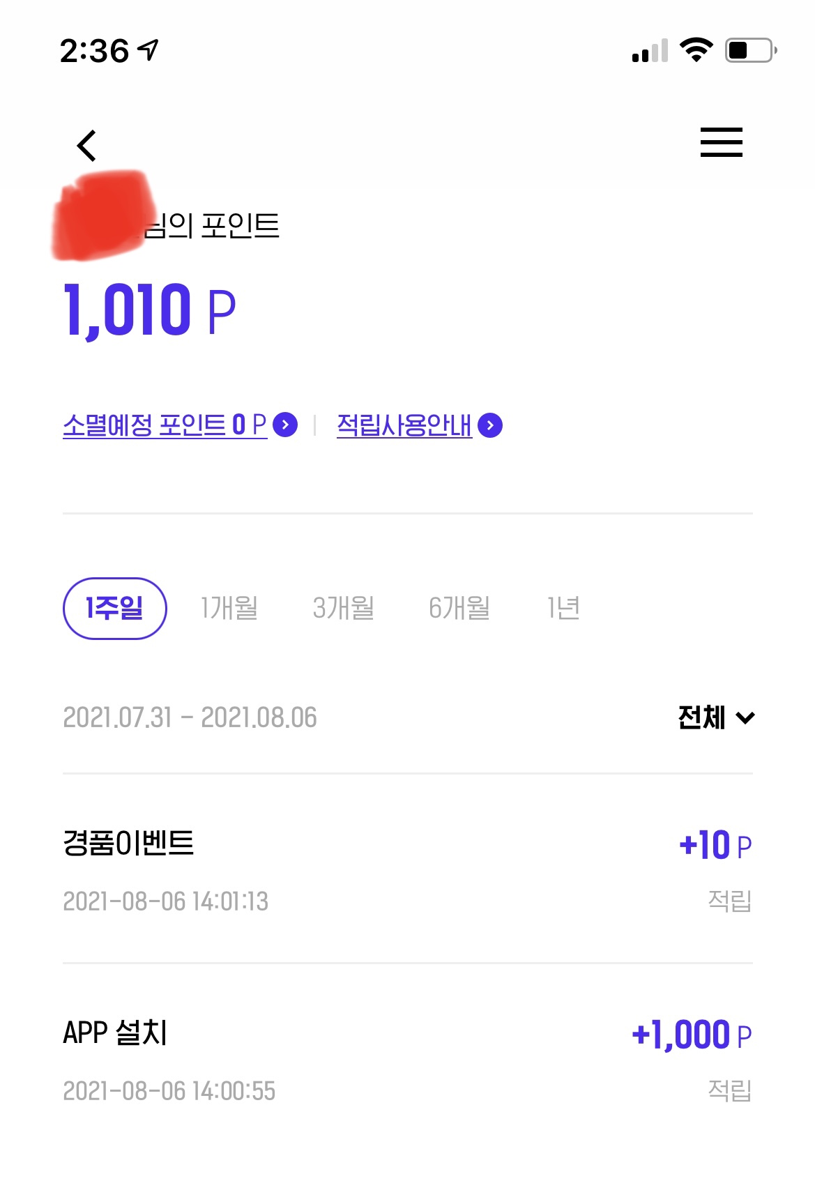 (2) 8월 6일 금요일 14:36 포인트 2,120원이 H point 명목으로 갑자기 증발