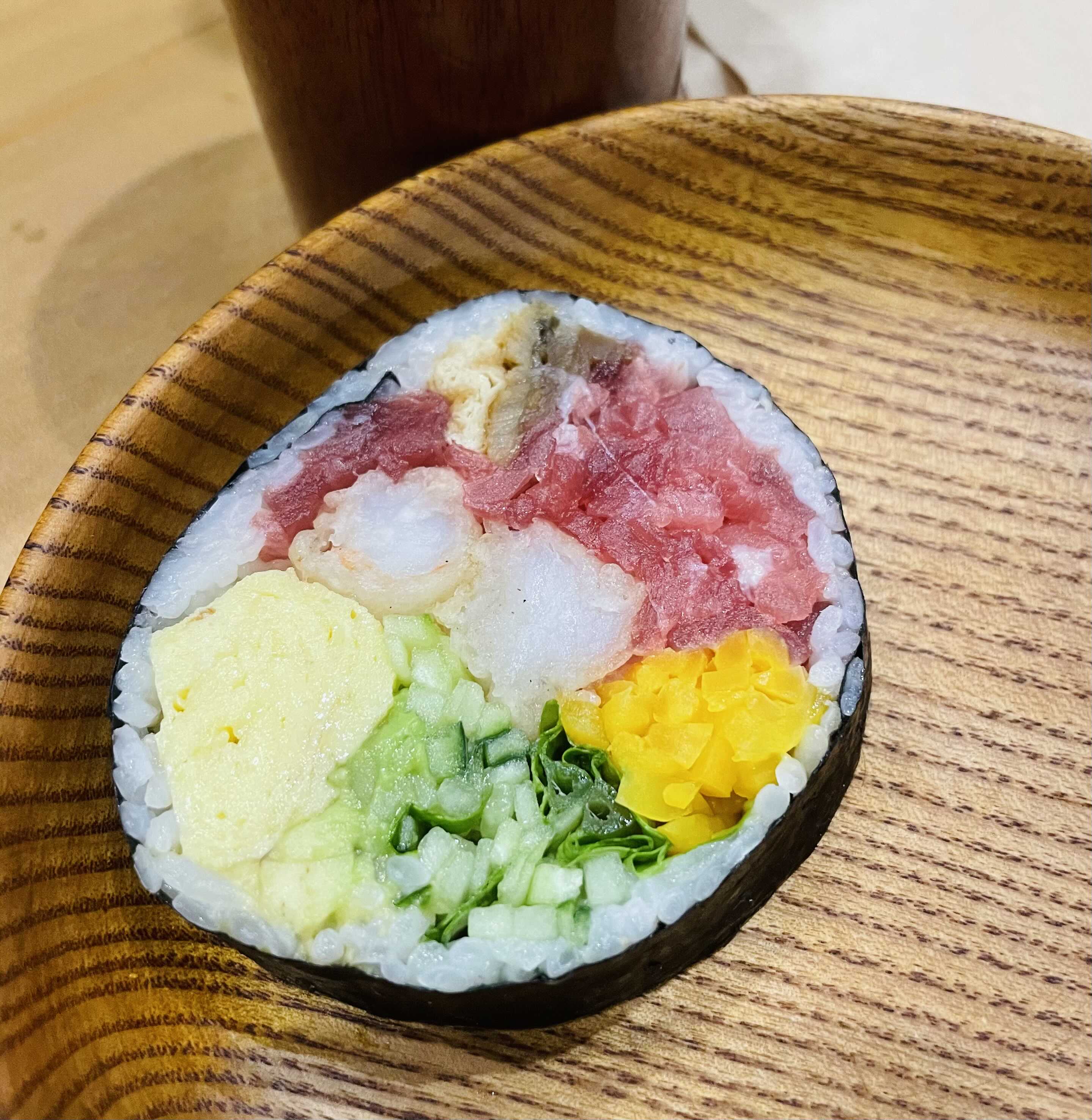 내가 주문한 연어덮밥을 기다리면서 친구가 준 후토마키를 먹었다. 맛있는 재료가 가득 들어갔으니 맛이 없을 수 없지만, 개인적으로 이렇게 큼직한 후토마키를 볼때마다 어찌 먹어야 할지 난감함ㅋㅋ “후토마키 잘 먹는 법”이라도 검색해 봐야 하나...