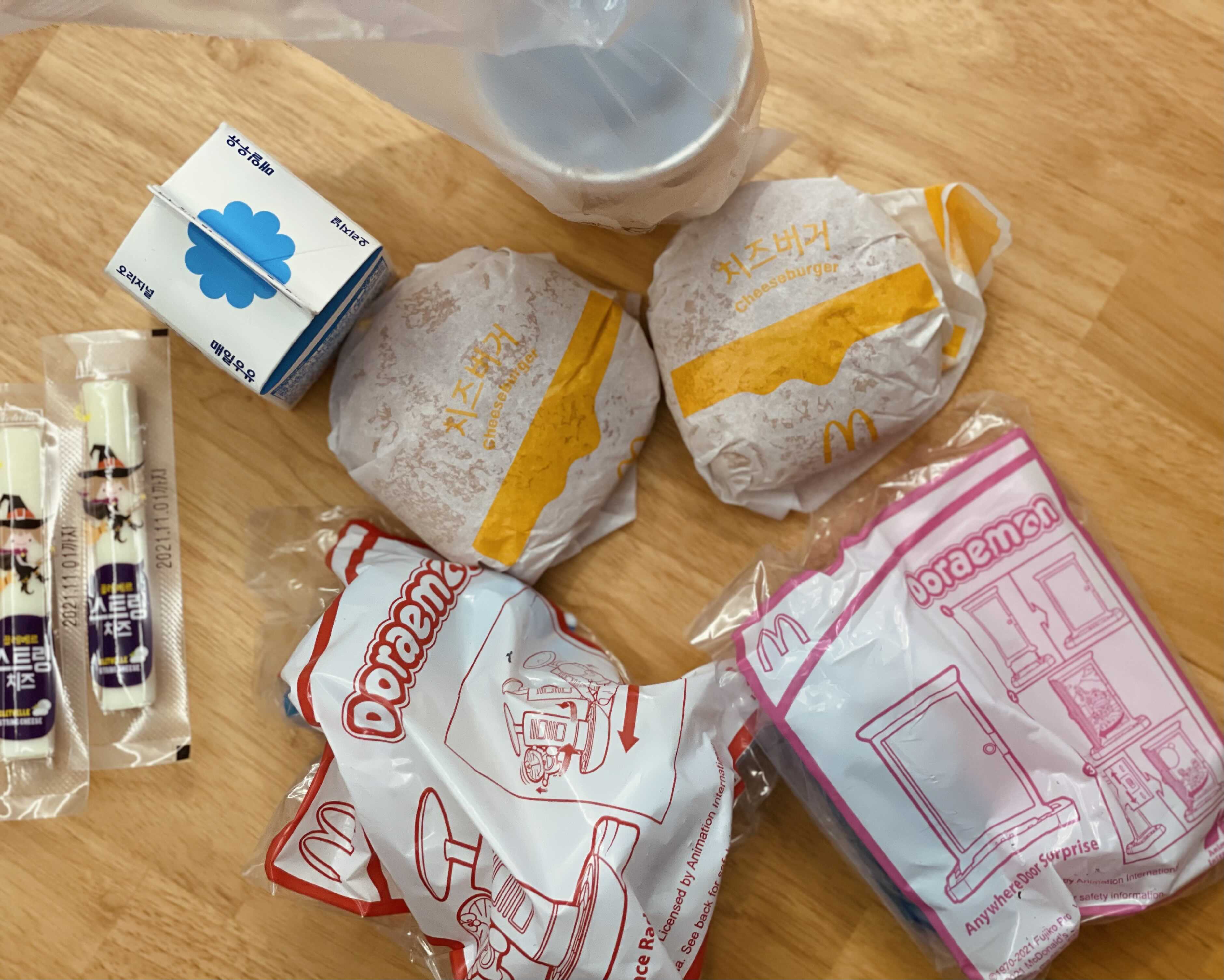 정말 오랜만에 맥도날드 해피밀을 샀다. 최근, 맥도날드가 유통기한 지난 식재료를 사용했다는 뉴스를 보고 괘씸해서 불매하려고 했는데 도라에몽 해피밀을 보고는 그 마음이 사르르… 에휴.