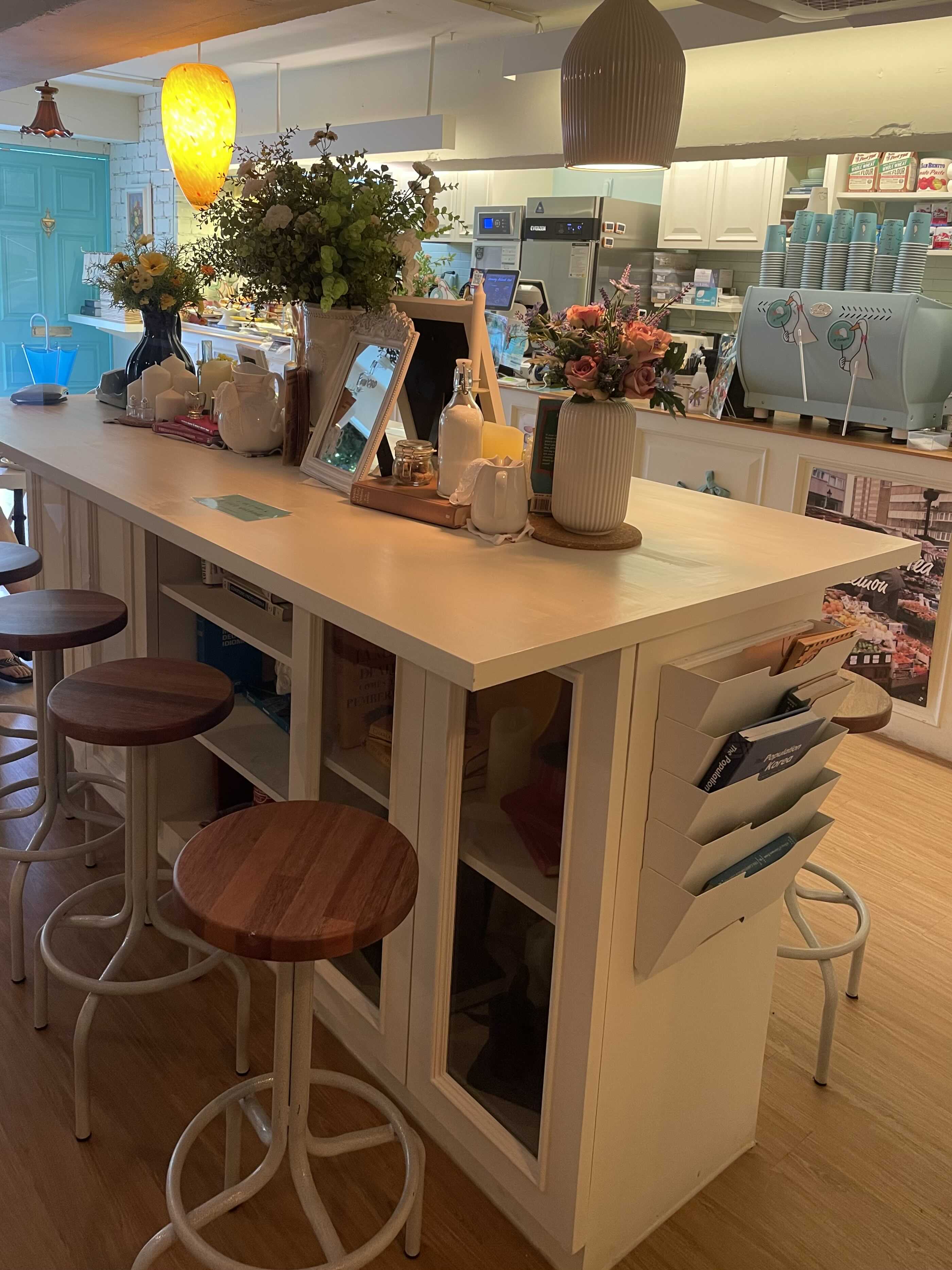 마음에 들어 인테리어 참고차 찍어온 사진. 나도 내 2층 거실에 이런 아일랜드 수납 테이블을 놓으면 어떨까 싶다. 아래쪽엔 수납을 잔뜩 하고, 테이블 위에선 레고 조립도 하고, 차도 마시고, 노트북도 하고… 근데 큰 문제 한가지는 내가 이런 종류의 높은 의자(바 의자 bar chair)를 불편해 한다는 거다. 다리가 바닥에 안닿으면 안정감이 없어서 평소에도 바 체어에는 잘 앉지 않는다. 집에서 계속 쓰다보면 익숙해질까?ㅋㅋ 또 다른 문제는 원하는 사이즈, 디자인으로 잘 만들어 줄 가구 공방을 모른다는 것. 그냥 기성 가구 중에서 잘 찾아봐야 하려나…(한숨)