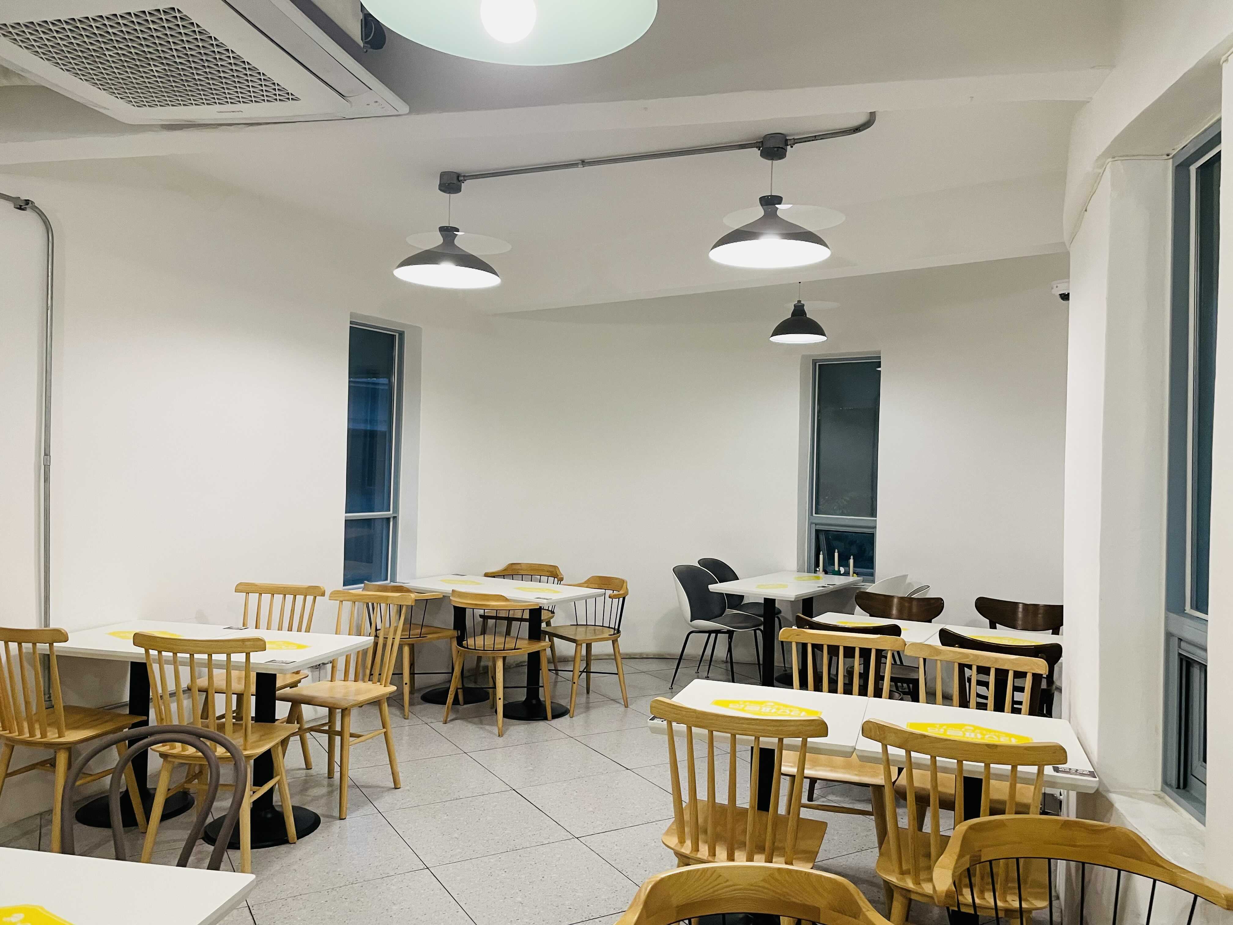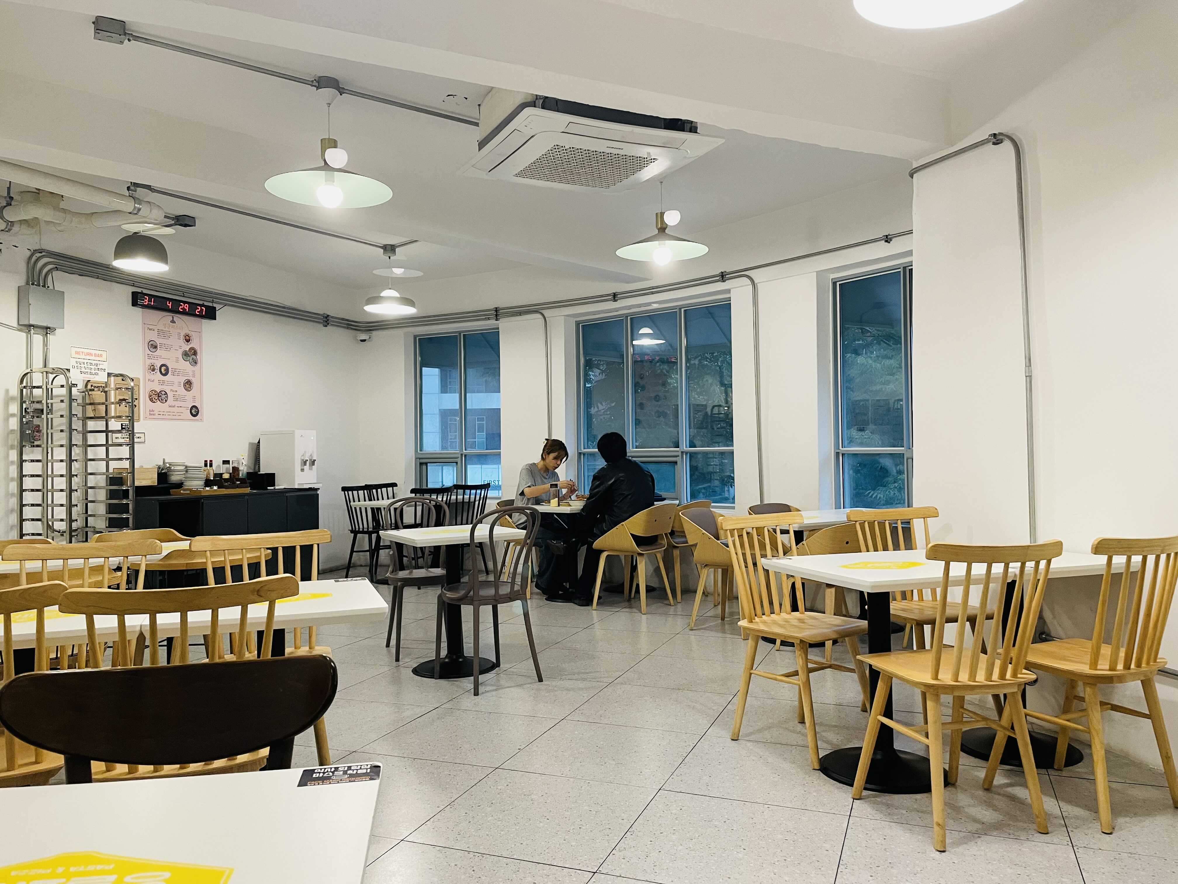 비 오는 저녁이라 그런지 가게 내부가 약간 우중충한 느낌이 들었다. 어딘지 모르게 학생식당 같달까… 아마 밝은 낮에 보면 좀 더 좋은 느낌일 듯. 그리고 꽤 연식이 된 것 같은 건물인데, 원래는 무슨 용도로 지어졌던 건지 궁금했다.