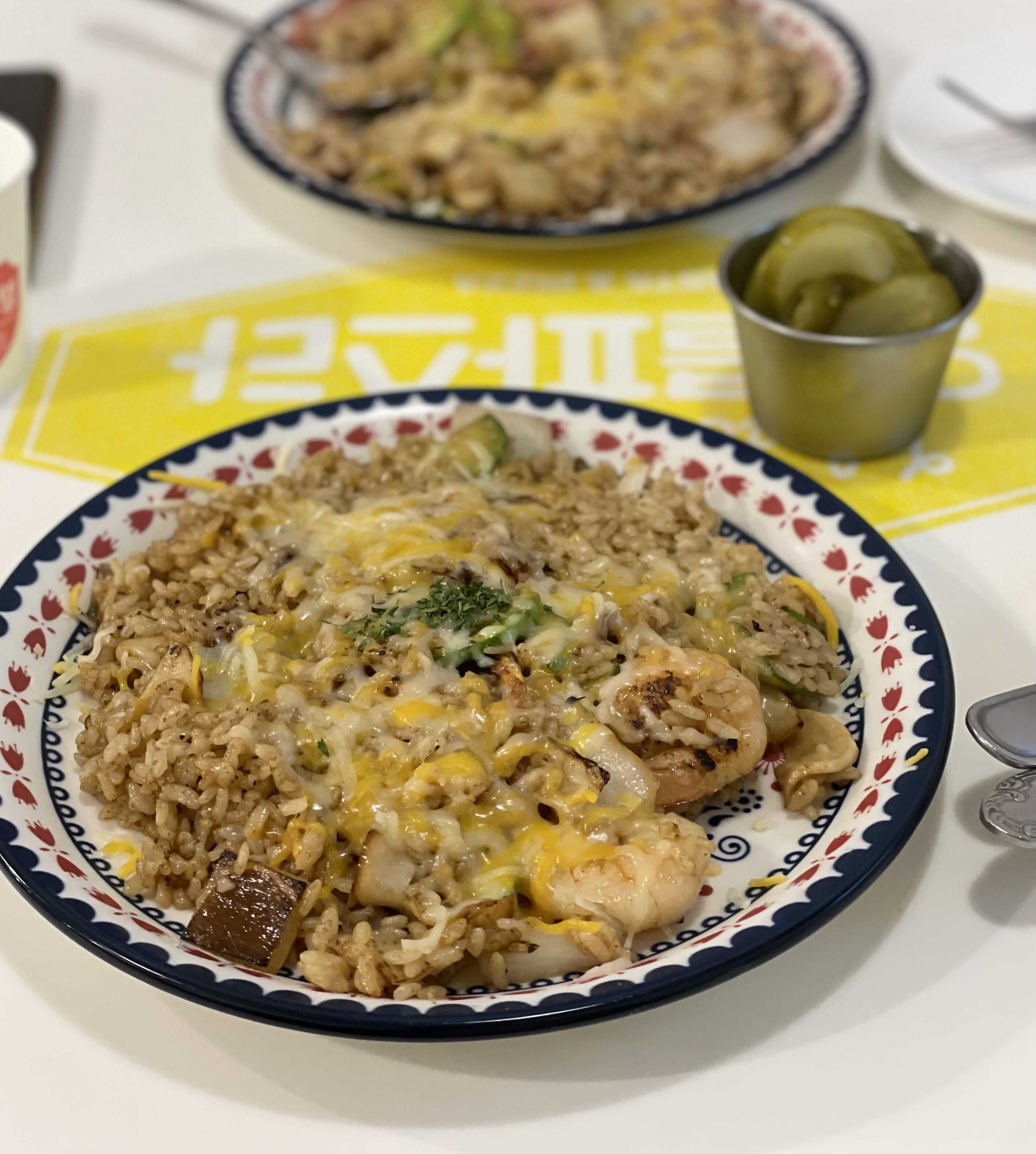 우리가 주문한 새우 필라프와 배이컨 필라프는 가격 대비 무난한 맛? 새우가 실하고 야채가 큼직하게 썰어져 있는 스타일이었다. 양이 살짝 적은 느낌이었는데, 다른 블로그 후기들 봐도 1인 1메뉴보다는 2인 3메뉴나 3인 4메뉴 정도가 적당하다고 한다ㅎ