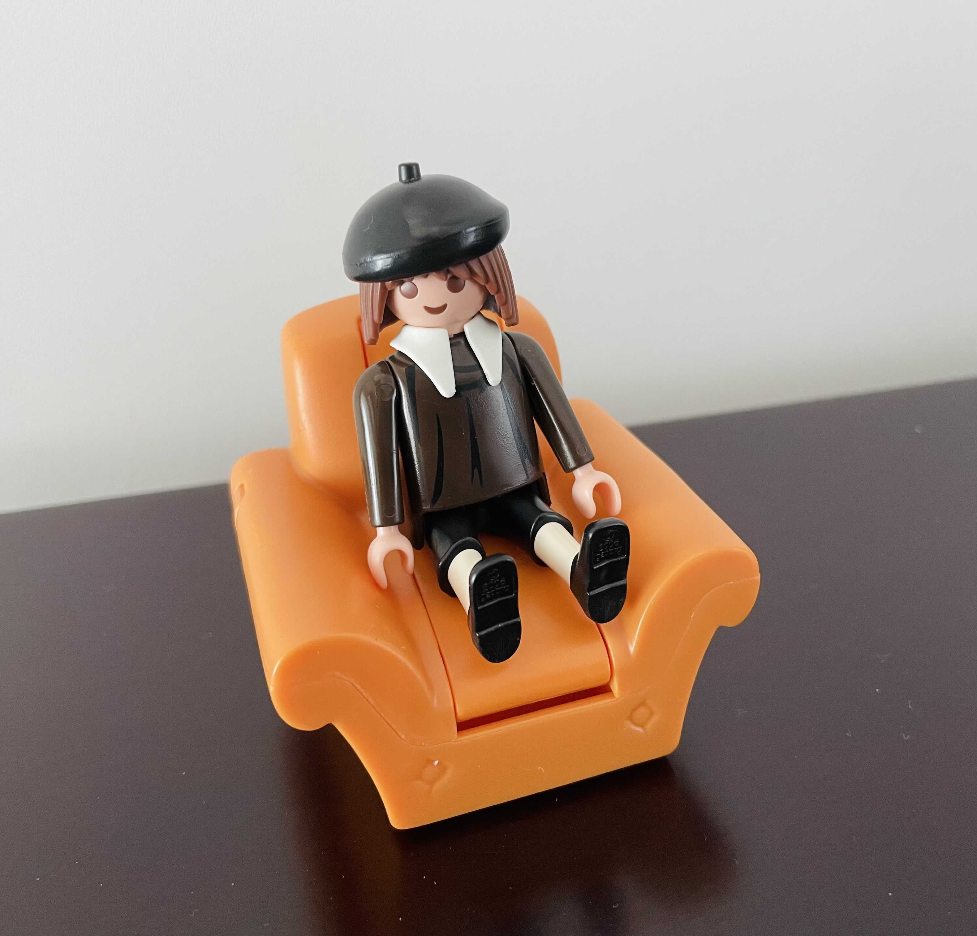 톰과 제리 해피밀 소파 위에 플레이모빌 렘브란트를 올려보았다. 제법 어울리기는 하지만, 소파 바닥이 기울어져 있는 모양이라 균형을 잘 잡지 않으면 플레이모빌이 흘러내린다.