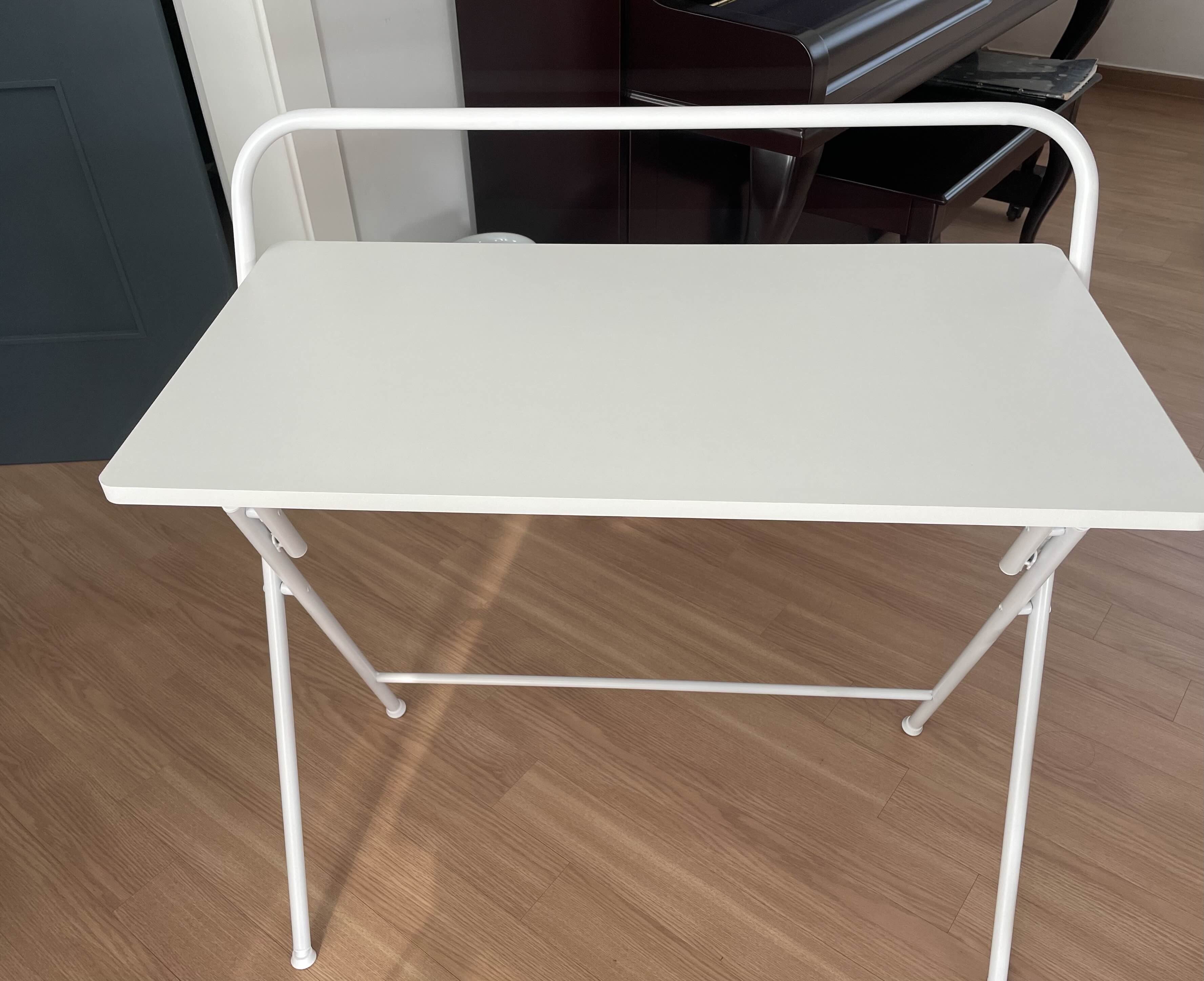원래 내 책상은 거실에 있는데, 부모님이 아래층 거실에서 TV를 보시면 그 소리가 내 거실까지 다 올라오기 때문에 고민하다가 접이식 책상을 샀다! 사진은 거실에서 찍었지만 지금 이 접이식 책상은 드레스룸에 있다. 제일 조용하고 아늑한 곳이 드레스룸이라서 공부는 주로 드레스룸에서 한다. 가벼워서 옮겨 다니기도 편하기 때문에 재택 근무를 하는 날엔 거실 책상 옆으로 옮겨서 ㄱ자 형태로 놓고 일을 하기도 하고… 고정된 장소에서 지루함을 자주 느끼는 나에게 딱. 다만 단점이 있다면 노트북을 쓰거나 책을 읽을땐 괜찮은데 글을 쓰면 좀 흔들린다. 그래도 3만원 정도 주고 샀는데 디자인도 괜찮고 다용도로 활용 가능해서 마음에 듬. (플레이모빌 조립할 때도 유용할 것 같아 심지어 하나 더 살까 생각 중!)