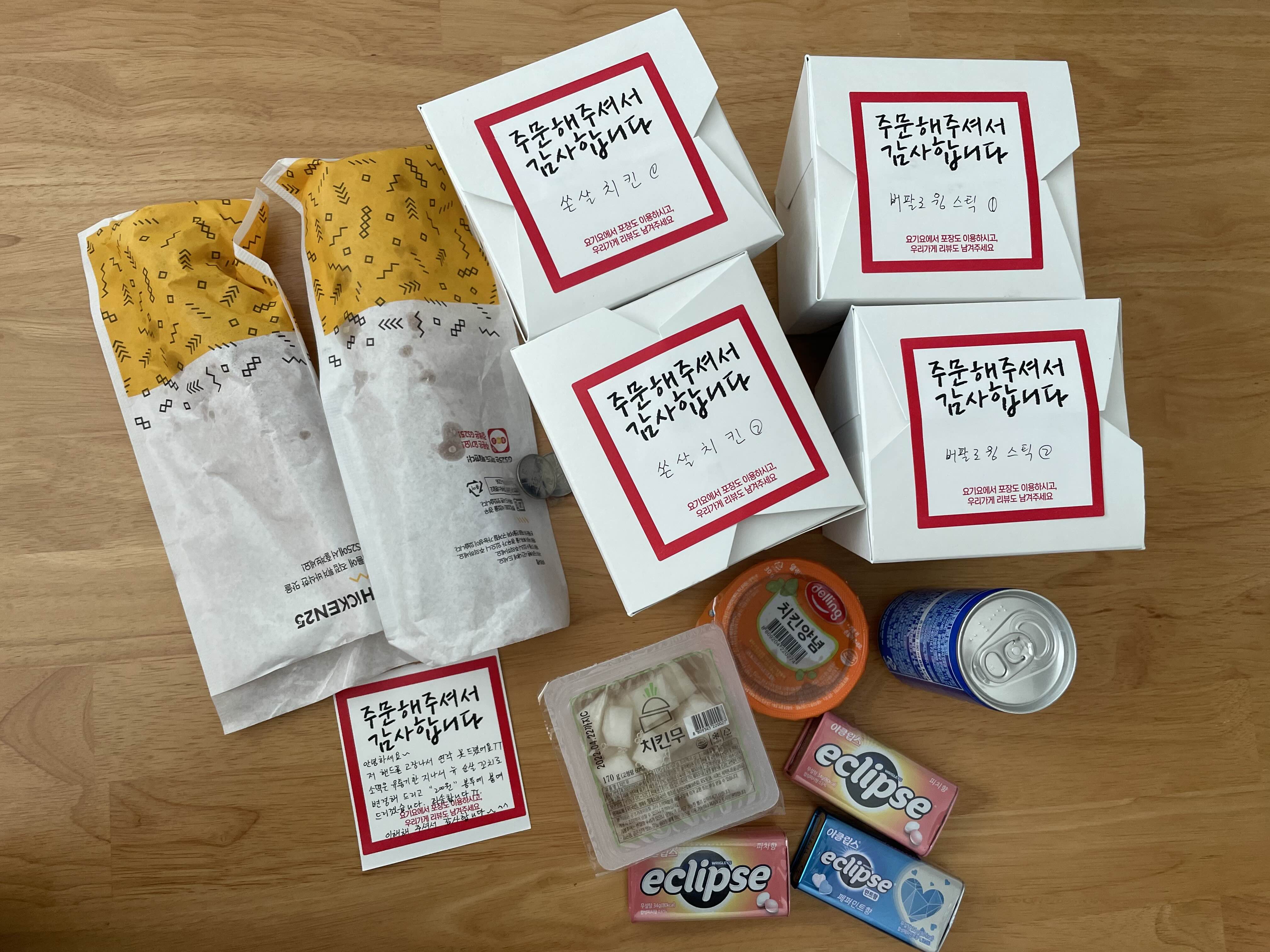 이렇게 품절돼서 원치 않는 제품이 오는 리스크도 있는데다가, 1시간 반 기다리느니 집앞 2분 거리 편의점이나 집 근처 5~10분 거리 치킨집 다녀올래요 흑흑…