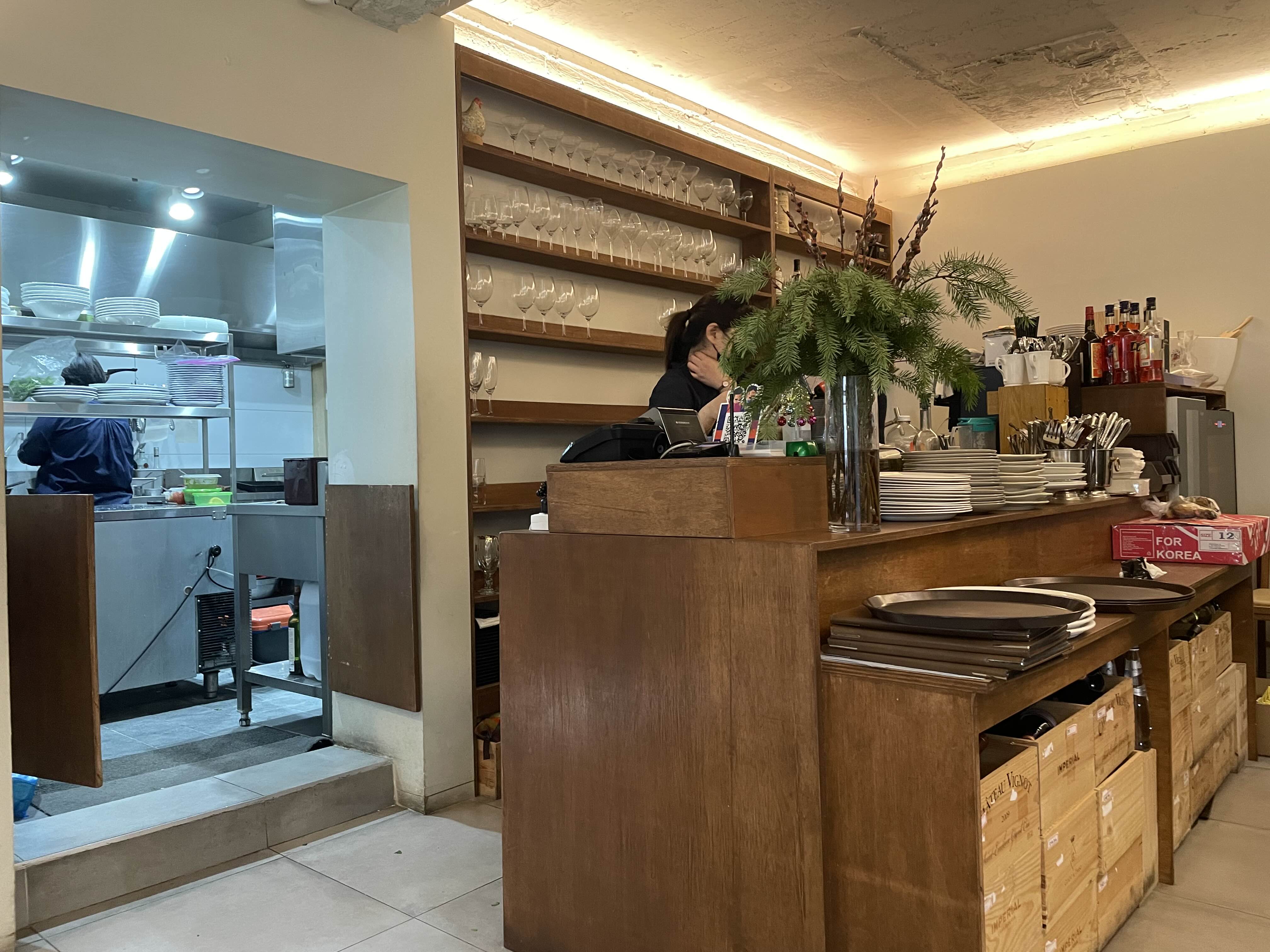 음식은 맛있었는데 위에서도 썼듯 연말이라 사람이 많아 직원분들이 혼이 나간 탓이었겠지만 메뉴판도 두번이나 요청한 뒤 간신히 받을 수 있었고, 재고량 파악하고 돌아오신다더니 통보도 없이 주문이 들어갔고, 마침 자리가 주방 근처라 더 시끄러웠고, 직원분들도 무뚝뚝… 그러다가 한 직원분이 우리 앞 테이블에서 와장창 접시를 엎는 사고까지 일어나서 식사 하는 내내 정말 정신이 1도 없었다. 매장 인테리어나 음식은 좋았지만, 가격이 저렴한 가게는 아니니 직원 응대 부분은 살짝 아쉽다는 생각이 들었다.