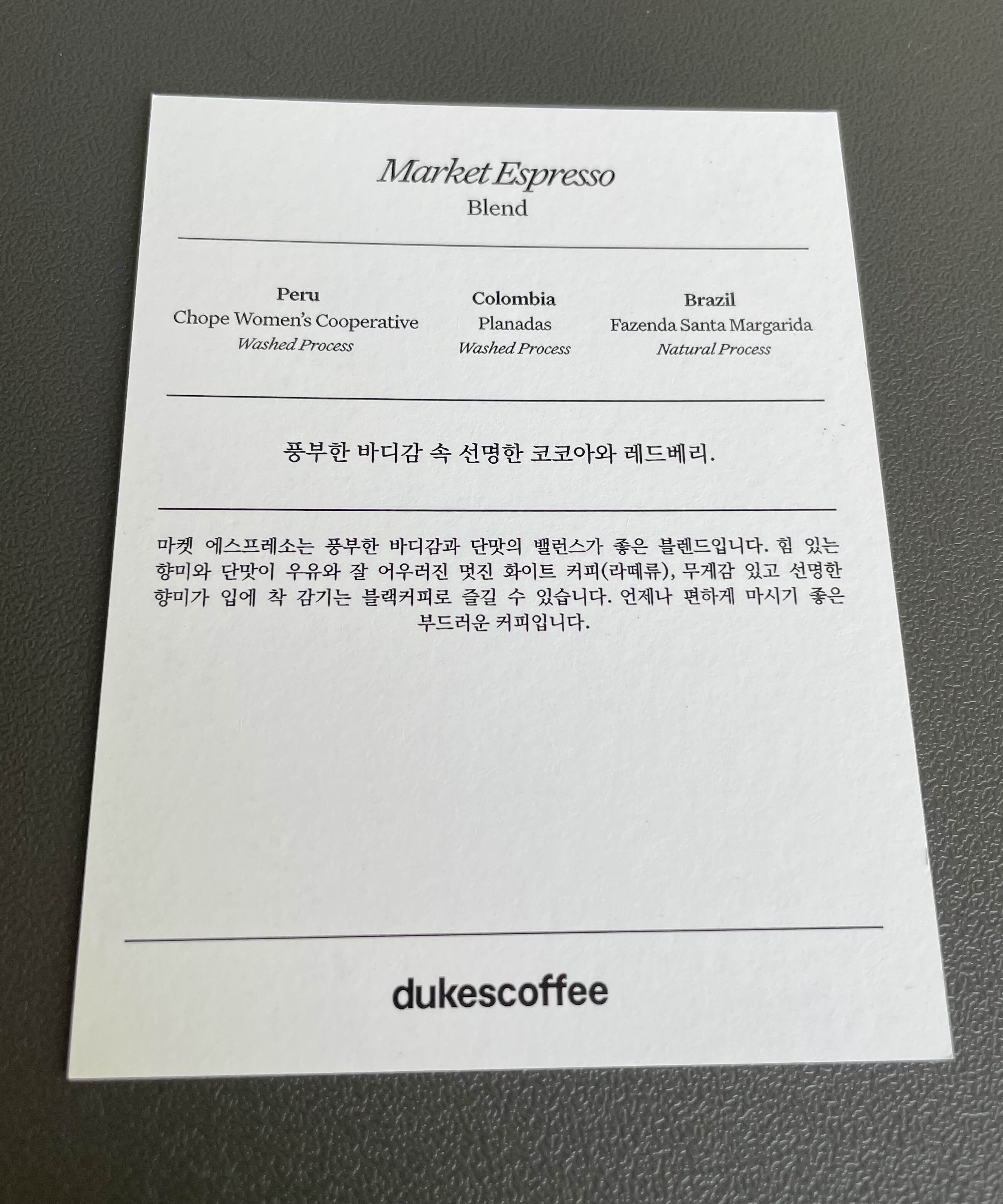 베이먼트 커피는 듁스커피의 원두를 쓰는데,