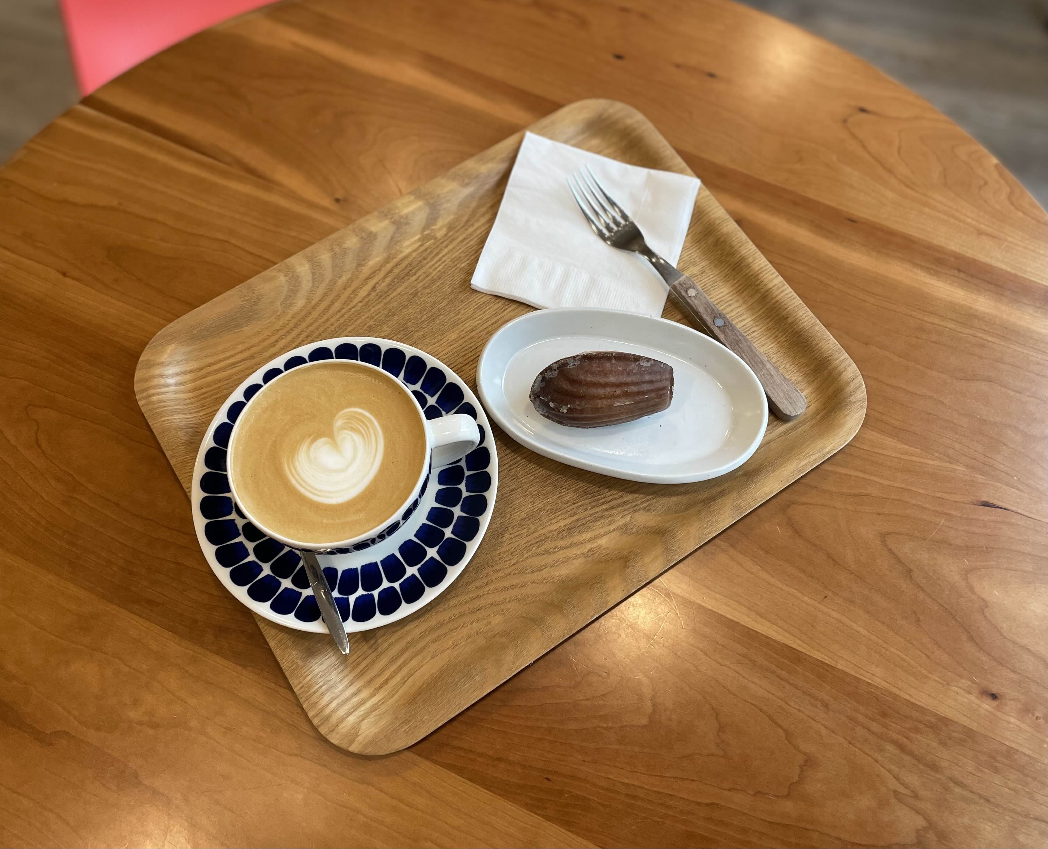 아침 식사 겸 해서 라떼와 레몬 마들렌을 주문했다. 매장이 붐비지 않을때는 테이크아웃 잔이 아닌 예쁜 잔에 커피를 내어 주신다는 것도 처음 알았다. 한가한 시간대의 매장에서 시간을 보낼 수 있는 사람만 누릴 수 있는 호사다.