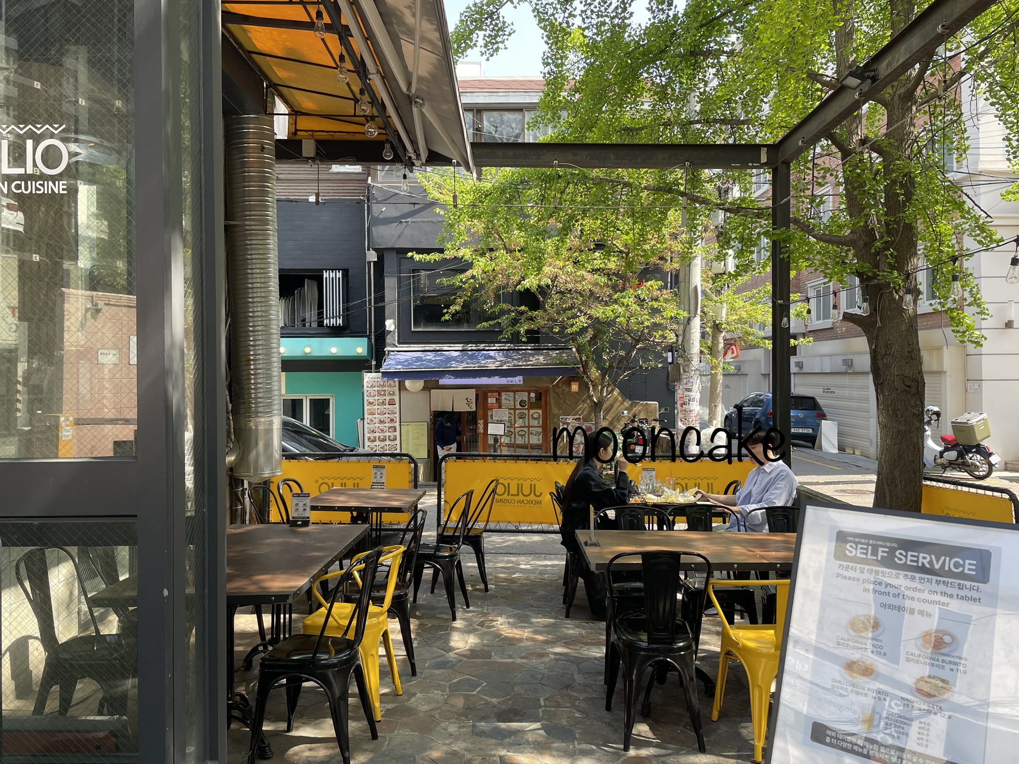 친구랑 우동, 떡볶이, 멕시칸 중에 무얼 먹을지 치열하게 고민하다가(세가지 모두 내 최애 음식들ㅋ) 오랜만에 훌리오 낙점! 야외 좌석도 좋아보였지만 날이 좀 더워서 실내로 들어갔어요.