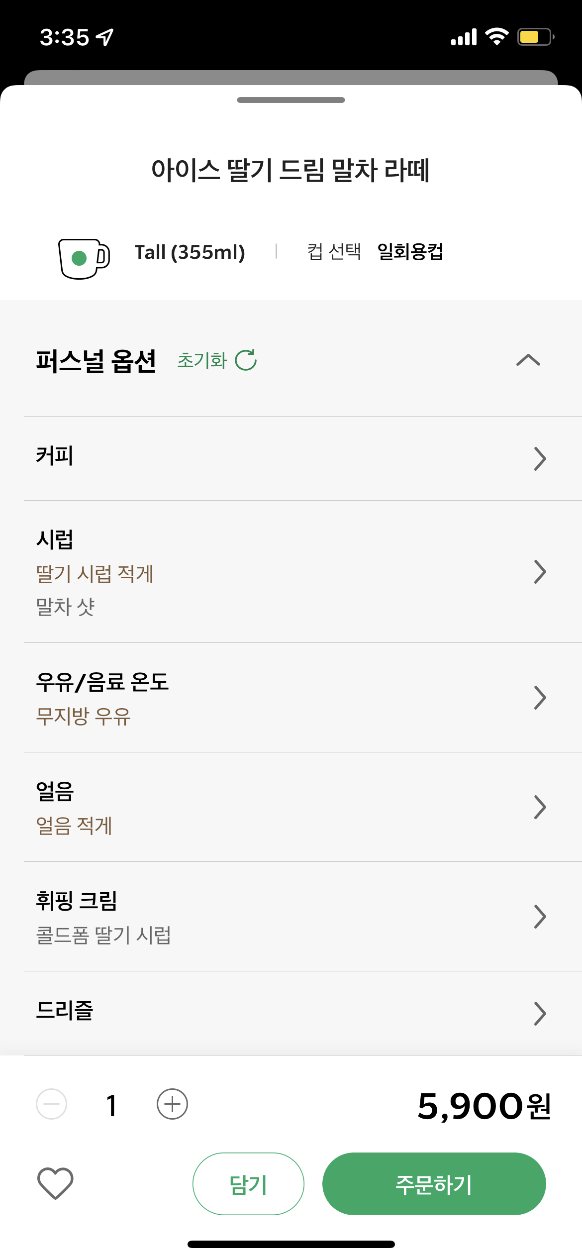 아이스 딸기 드림 말차 라떼는 나름 커스텀을 해서 마셨는데 밍밍한 듯 애매한 듯 하면서도 나쁘진 않았다 (응?)