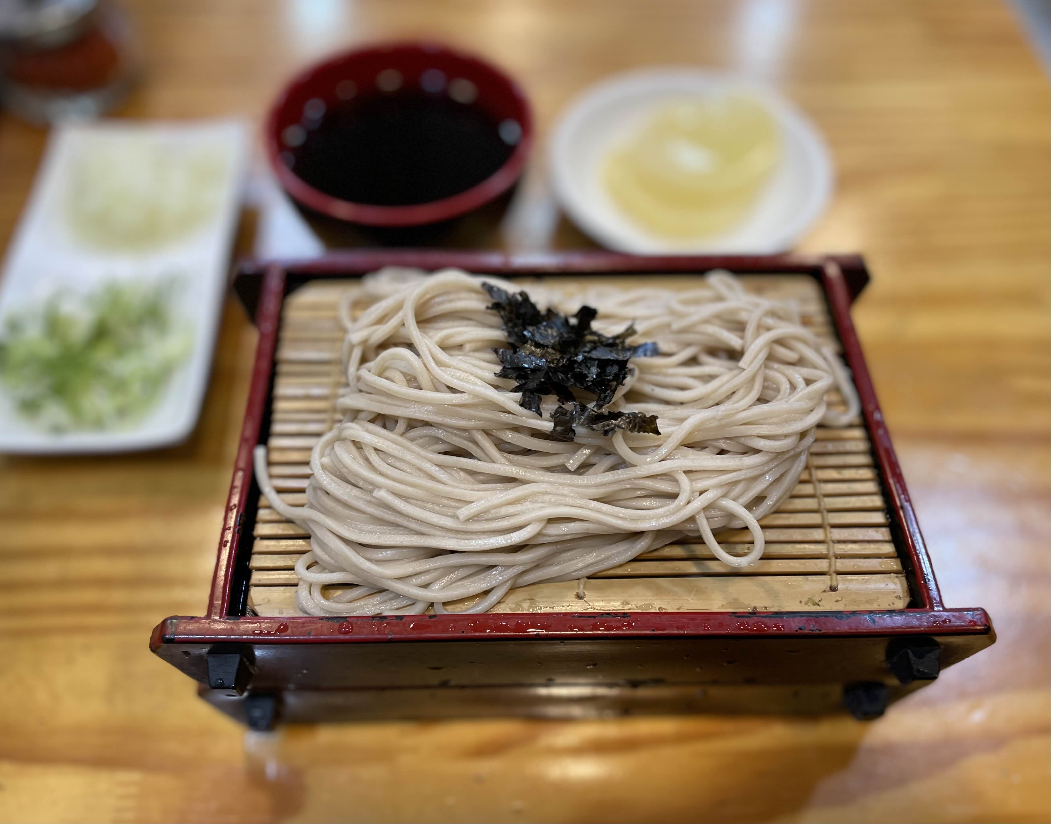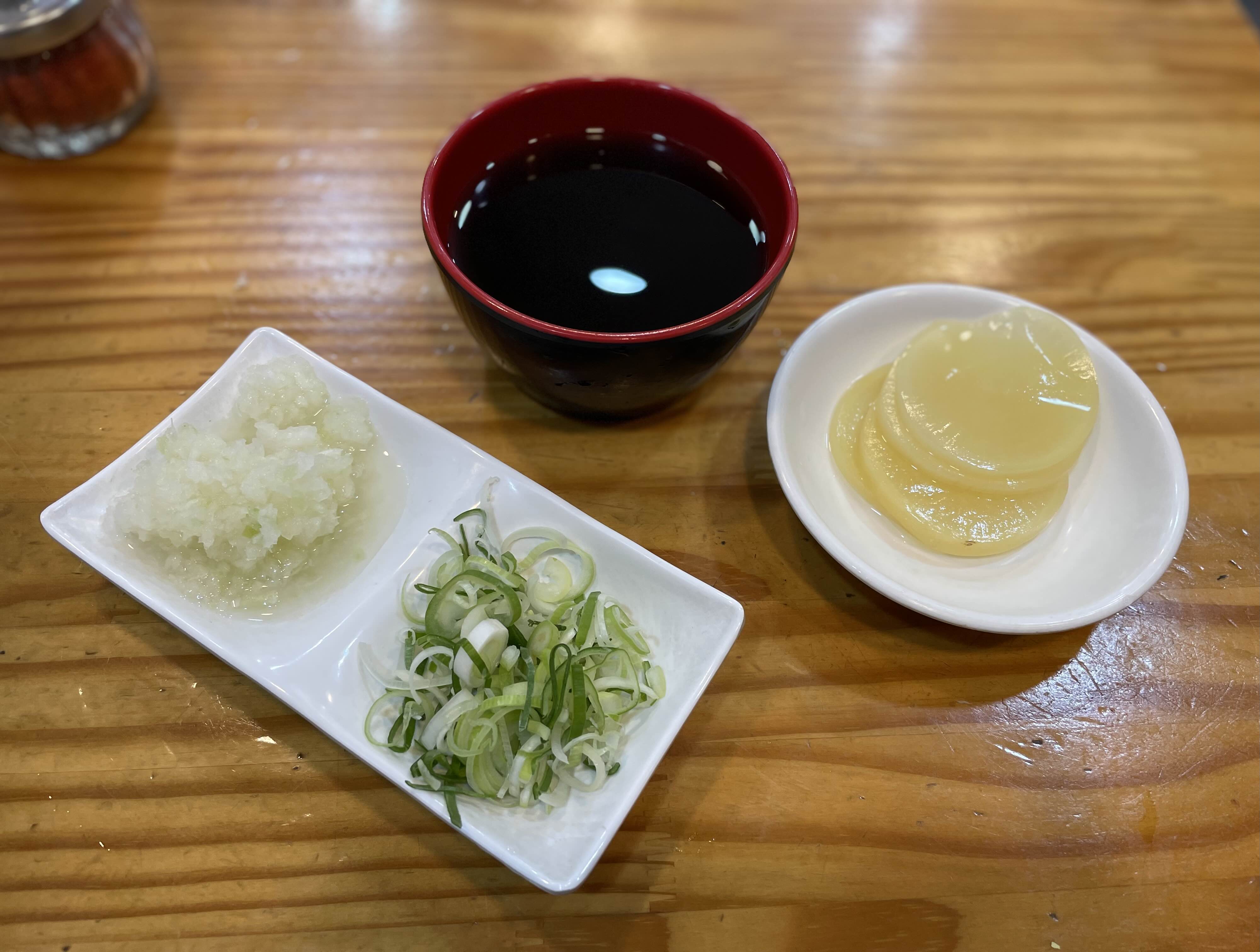우동이나 온메밀이 더 땡겼지만, 방문 목적이 냉메밀 비교니까 0.1초 정도 고민하다가 판메밀을 주문했고, 거의 바로 메밀간장육수와 단무지가 놓여졌다.