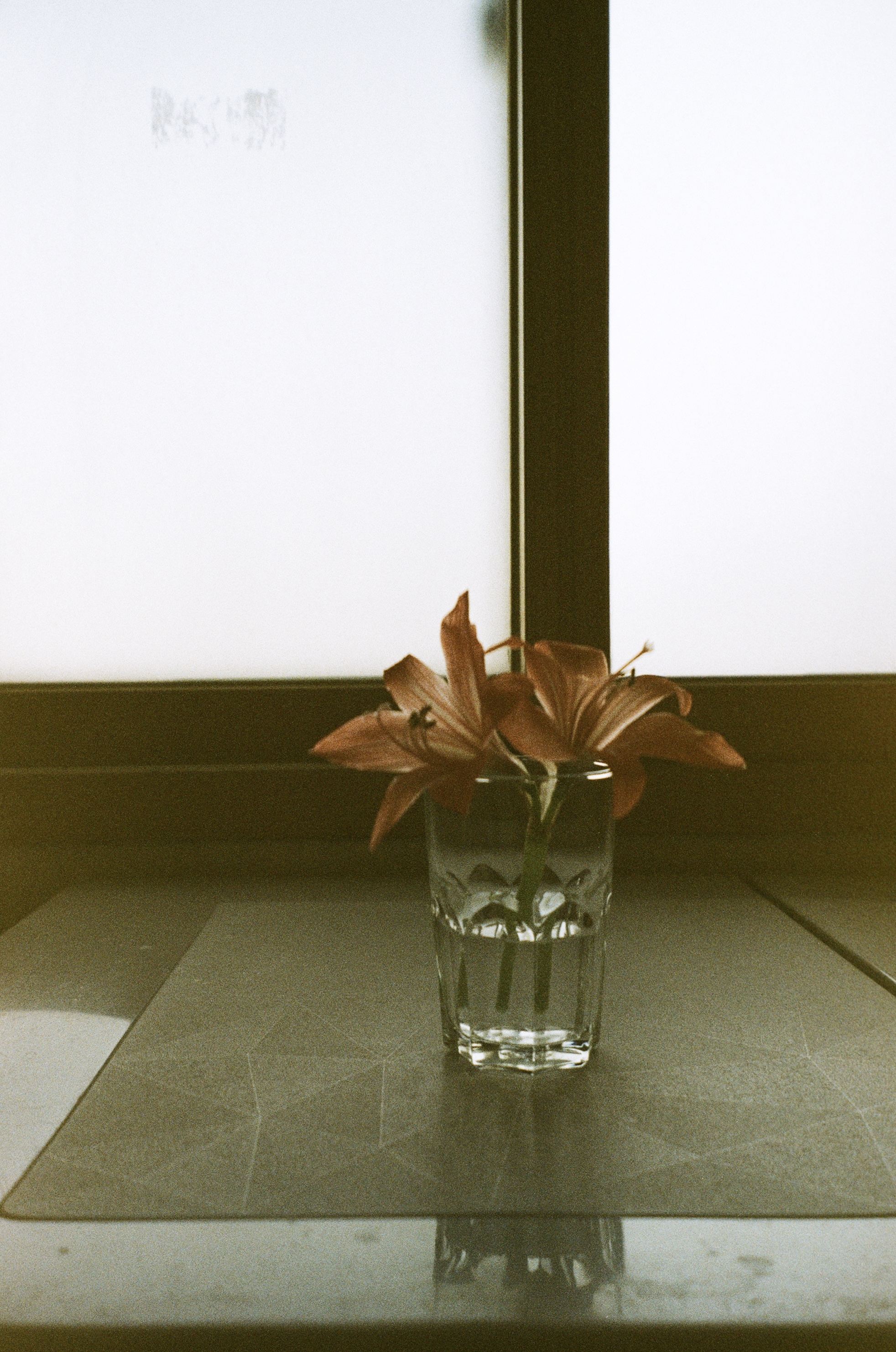 화분의 꽃을 유리컵에 담아두었던.