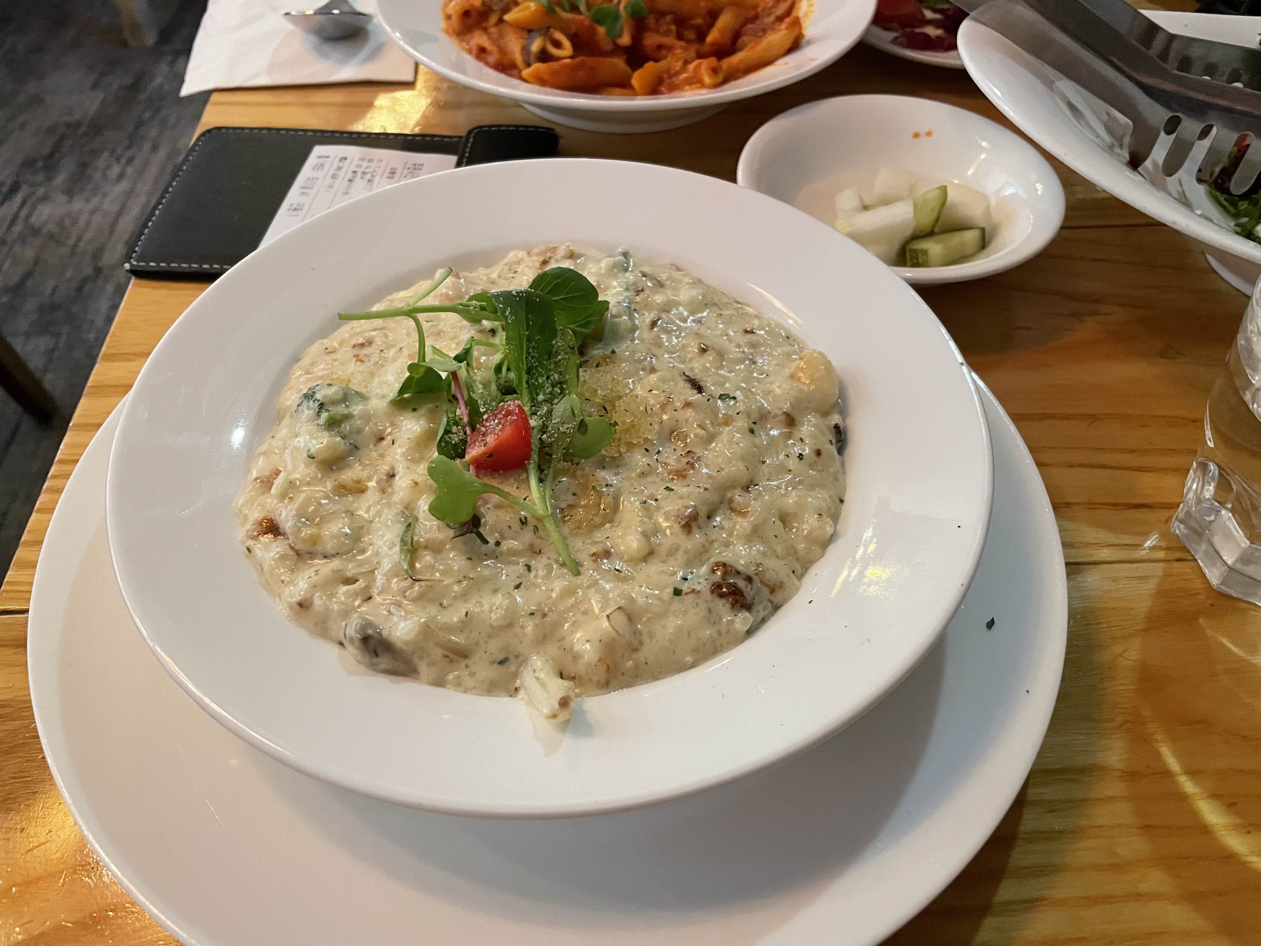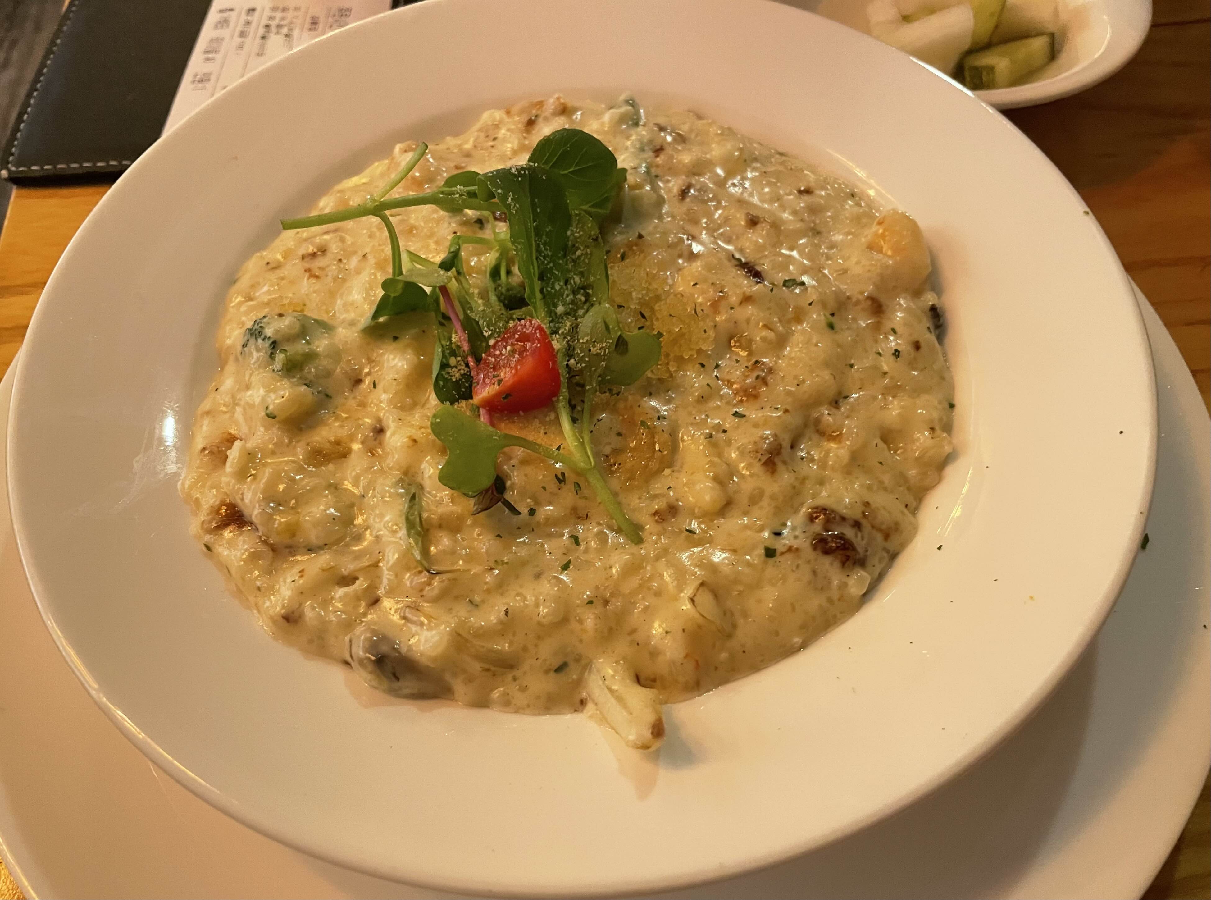 이때 갑자기 리조또가 땡겨 주문해 본 내 리조또는… 처음엔 분명 맛있었는데 먹다보니 점점 느끼해지고 양도 많아서 결국 다 못먹고 남겼다. 그래도 실하고 통통한 새우가 들어 있어서 좋았음.