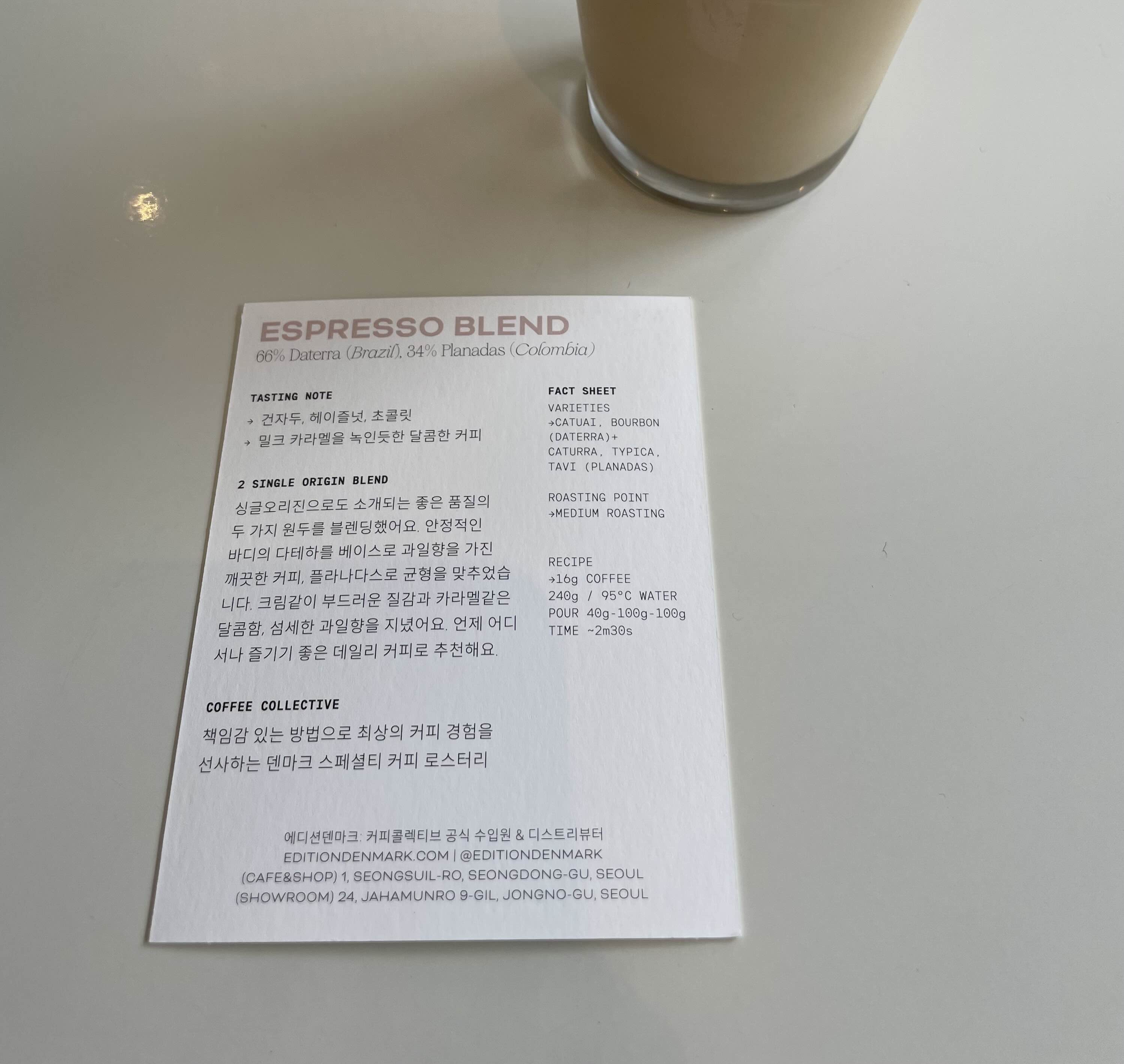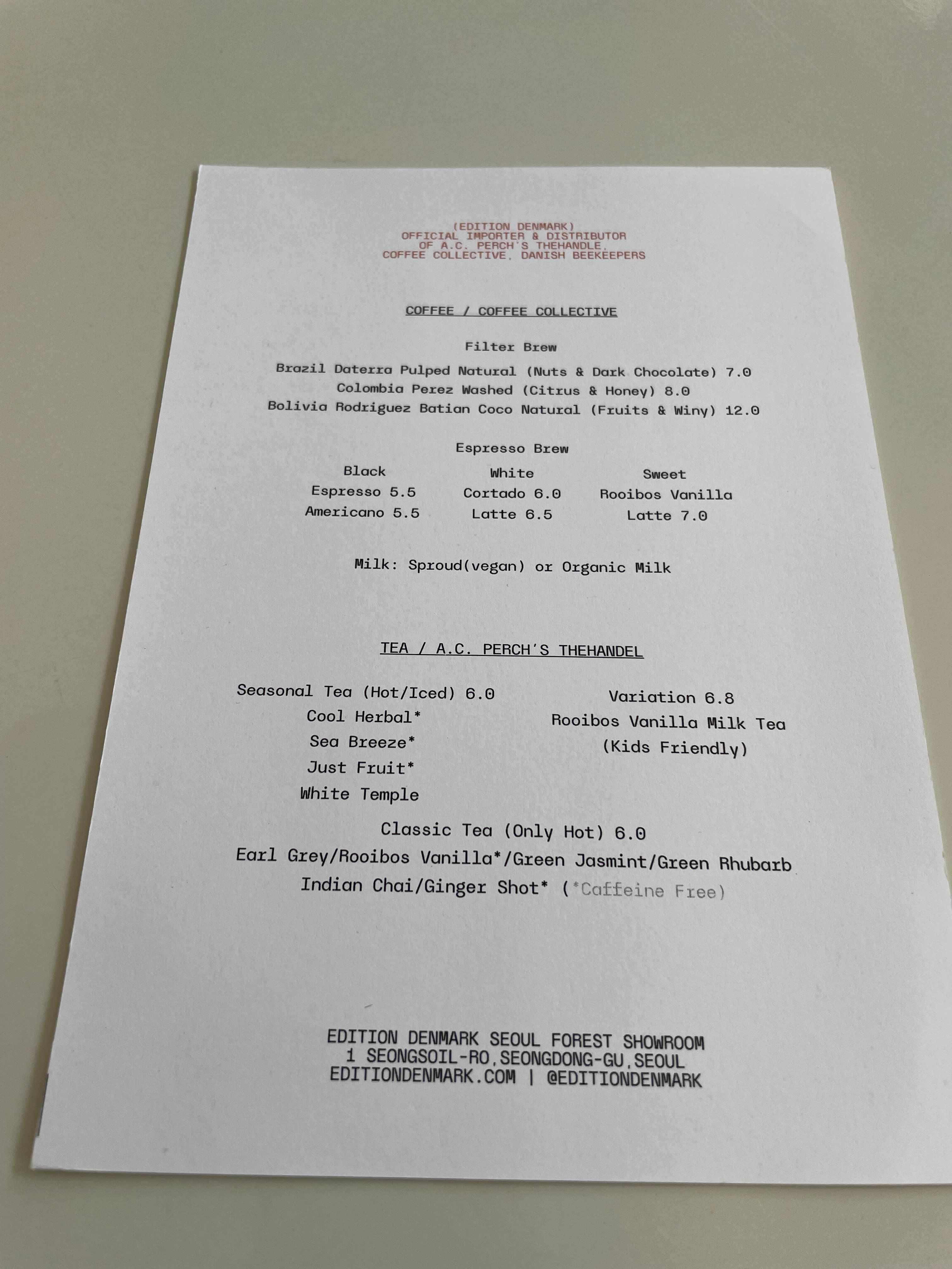 이때만 해도 에디션덴마크에서 커피 원두도 판매하는지 몰랐기 때문에 아 찻집에서 커피를 주문한 나란 인간 ㅜㅜ 하고 있었는데, 커피도 꽤나 진지하게 다루는 가게란 사실을 알고 안심했습니다.
