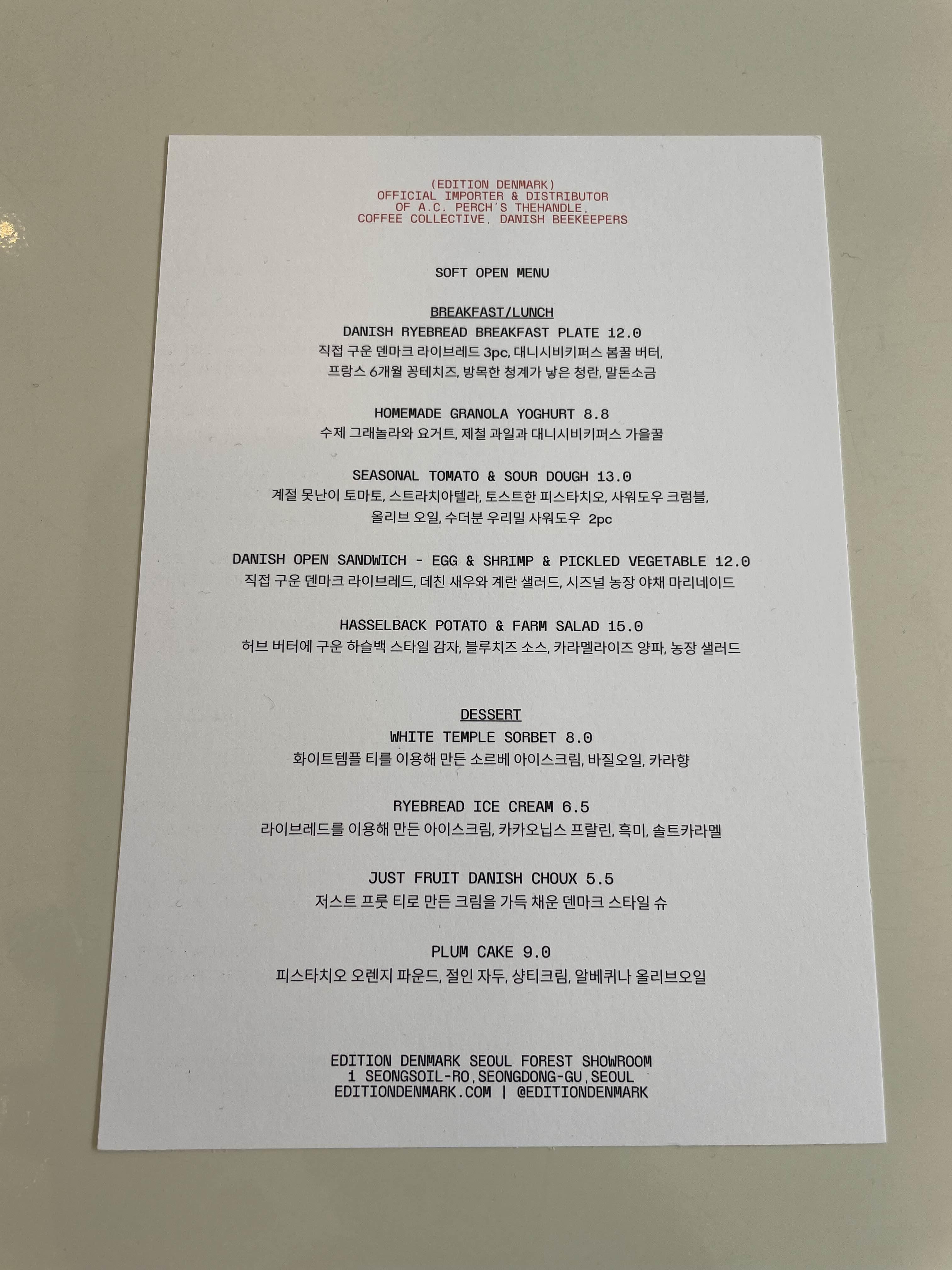 업무 차 성수동에 갔다가, 에디션덴마크 서울숲 쇼룸에 들려 점심을 먹었습니다 :)