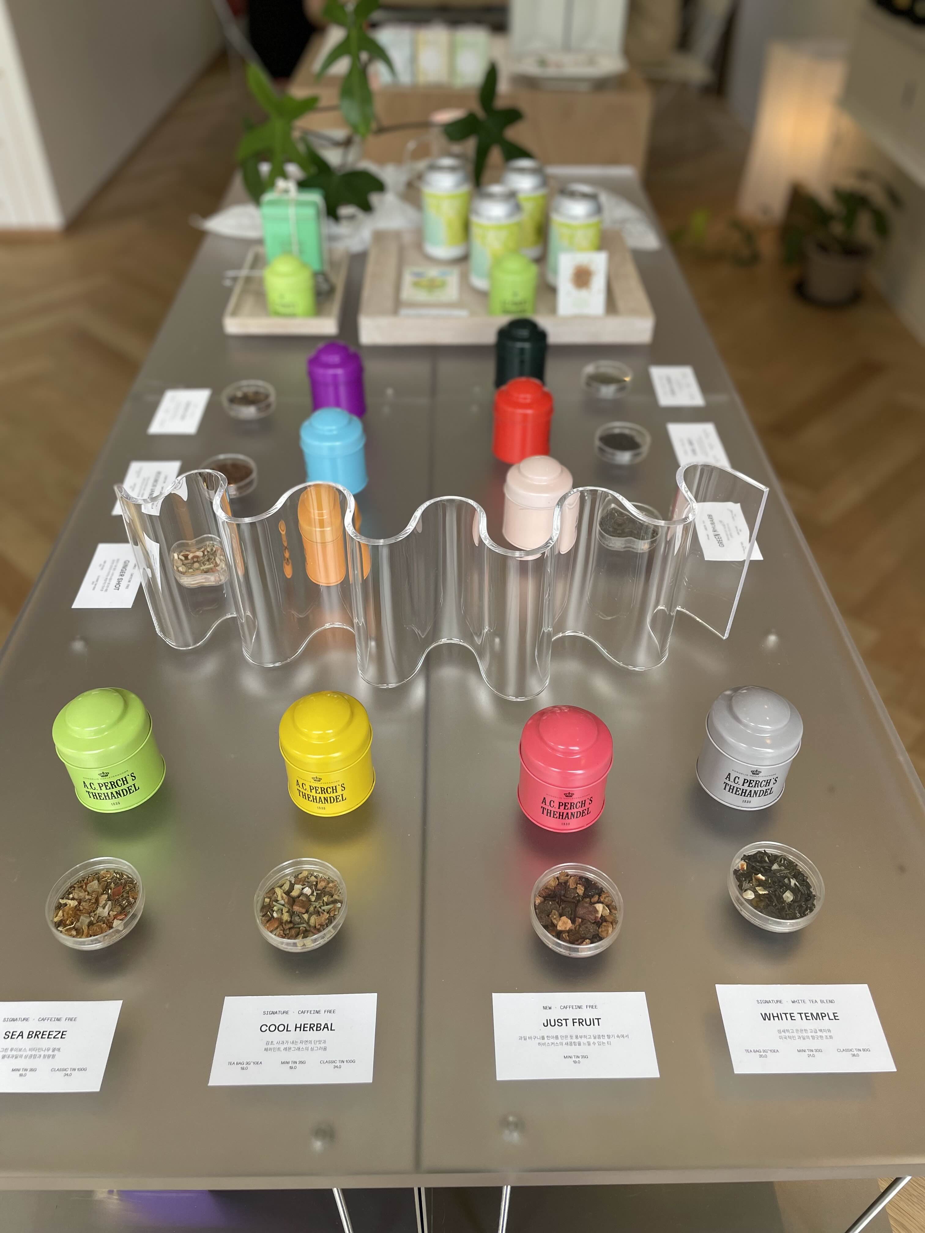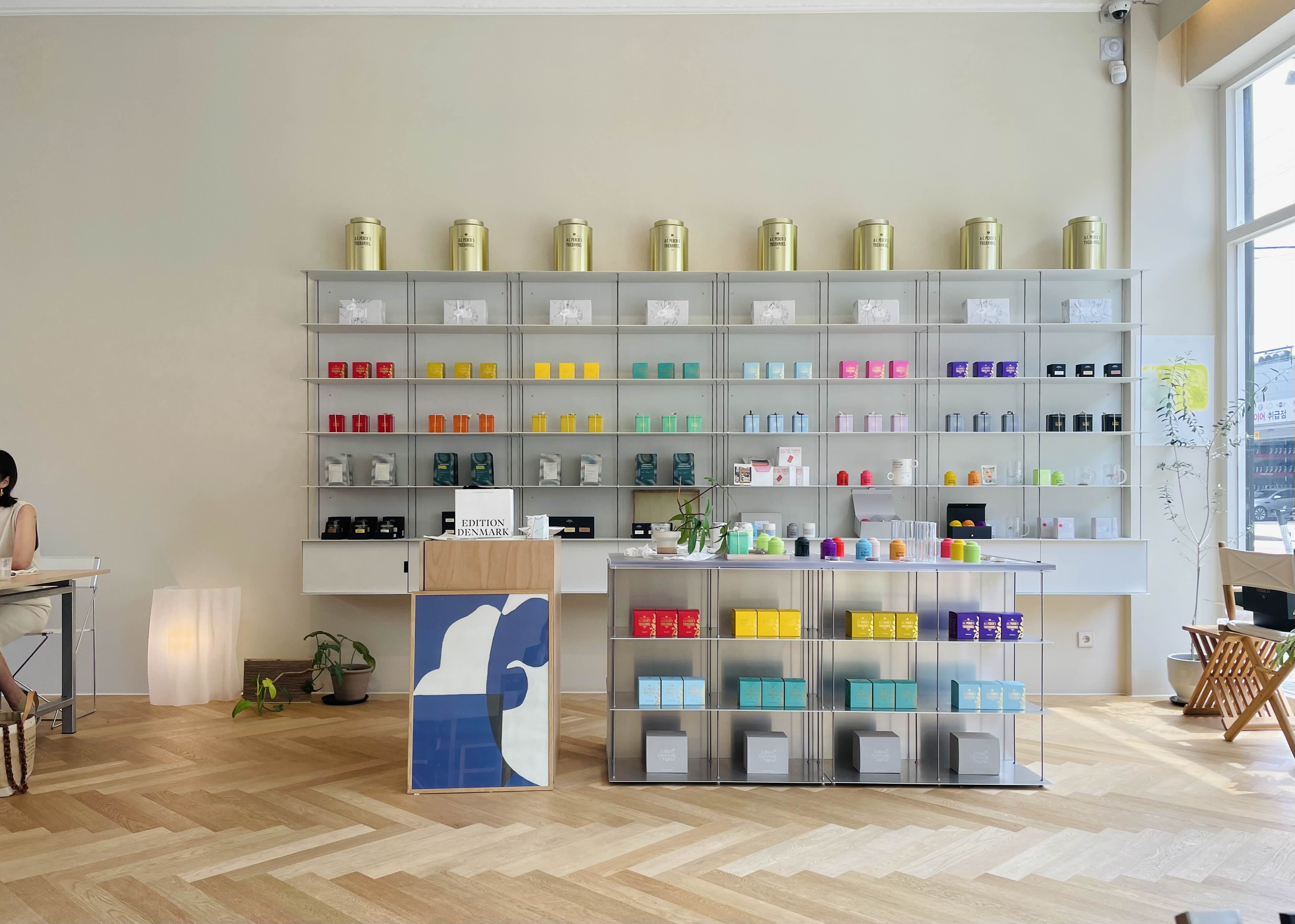 A.C.퍼치스의 차와 커피 콜렉티브의 커피, 대니시비키퍼스의 꿀 등 덴마크 브랜드의 제품들을 판매 중.