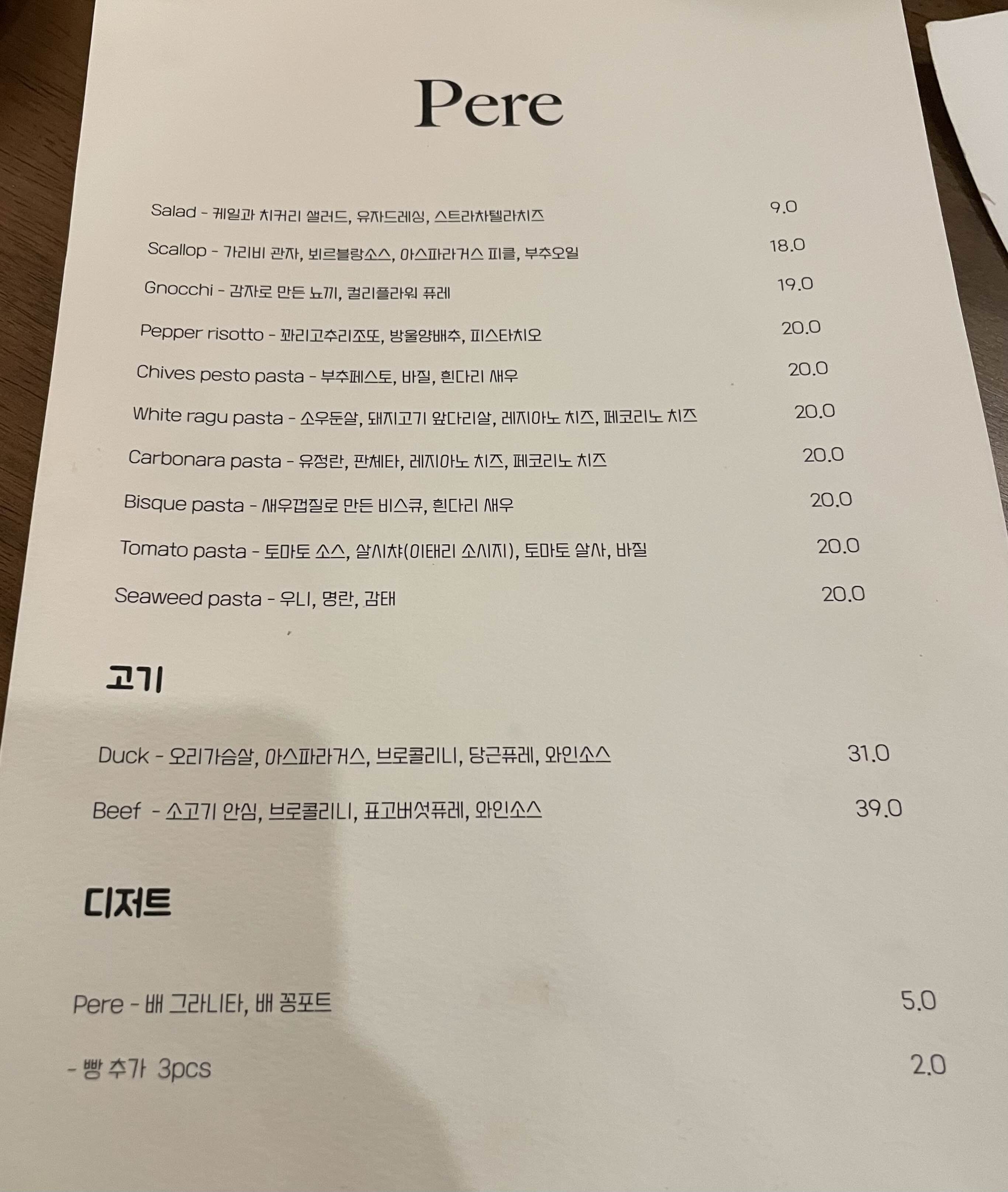 종로구 평동 경희궁자이 파스타집 페레 Pere 본문