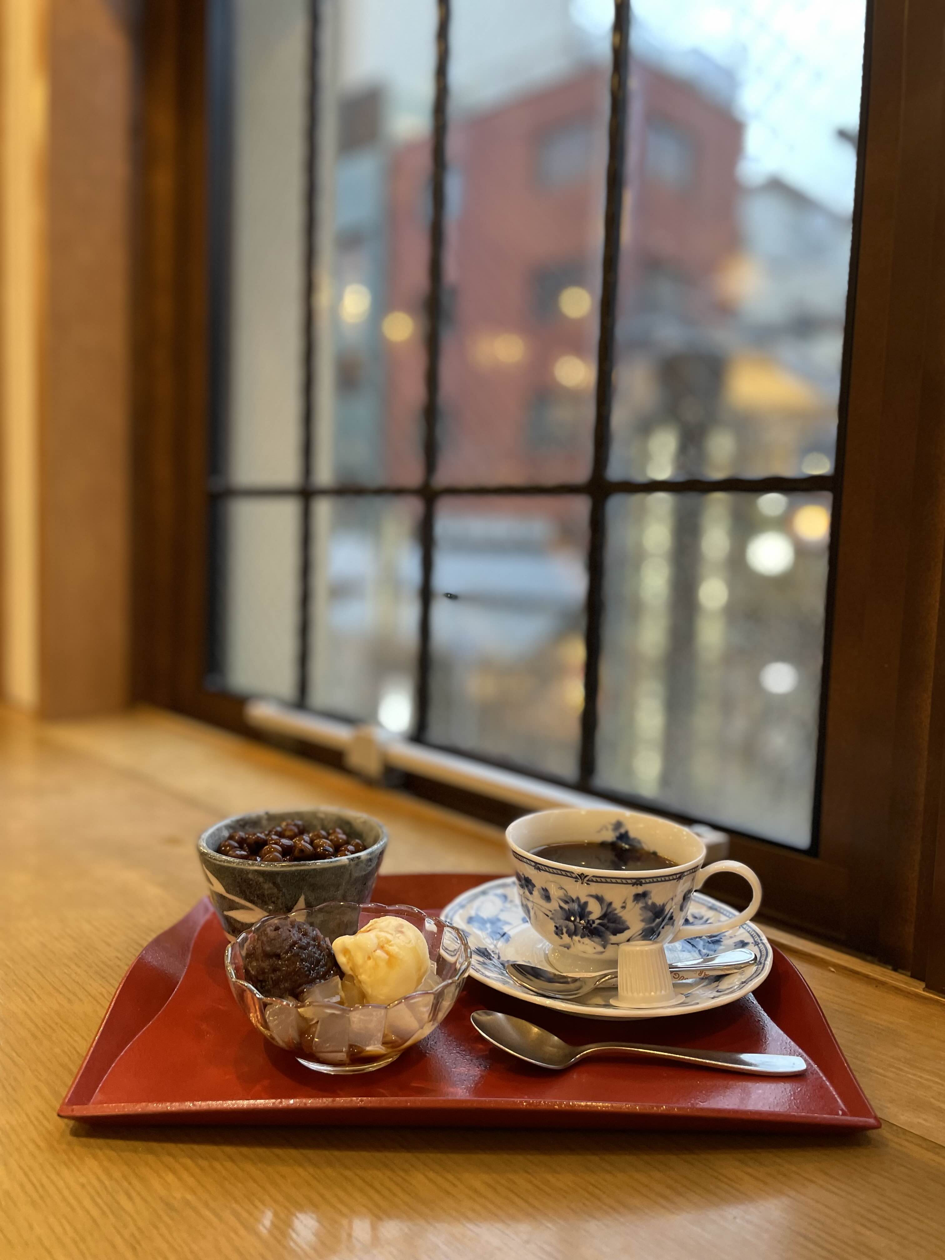 내 입맛에 마메칸은 솔직히 말해서 그냥 콩과 우뭇가사리..지만 소스가 맛있다. 풍미가 아주 좋다. 간식거리가 다양하지 않았던 옛날엔 별미였겠다 싶다. 크림안미츠는 무난했고, 의외로 커피가 아주 맛있었다. 고풍스러운 잔도 예쁘고, 반은 그냥 마시다가 나중에 크림과 설탕을 넣어 스푼으로 휘저었는데 아.. 이건 어린 시절의 기억을 떠올리게 하는 순간이다. 어른들은 잔 받침이 있는 커피잔에, 설탕을 넣고 티스푼으로 휘저었지. 나도 분명 그 어른들의 나이가 되었는데 (또 심지어 찻잔을 모으는데도!!!), 일상적으로는 그냥 머그잔에 무심하게 커피와 우유를 부어 들이킬 뿐이다. 비록 내가 향유하고 있지는 않지만 우아한 세계란 언제나 좋다.