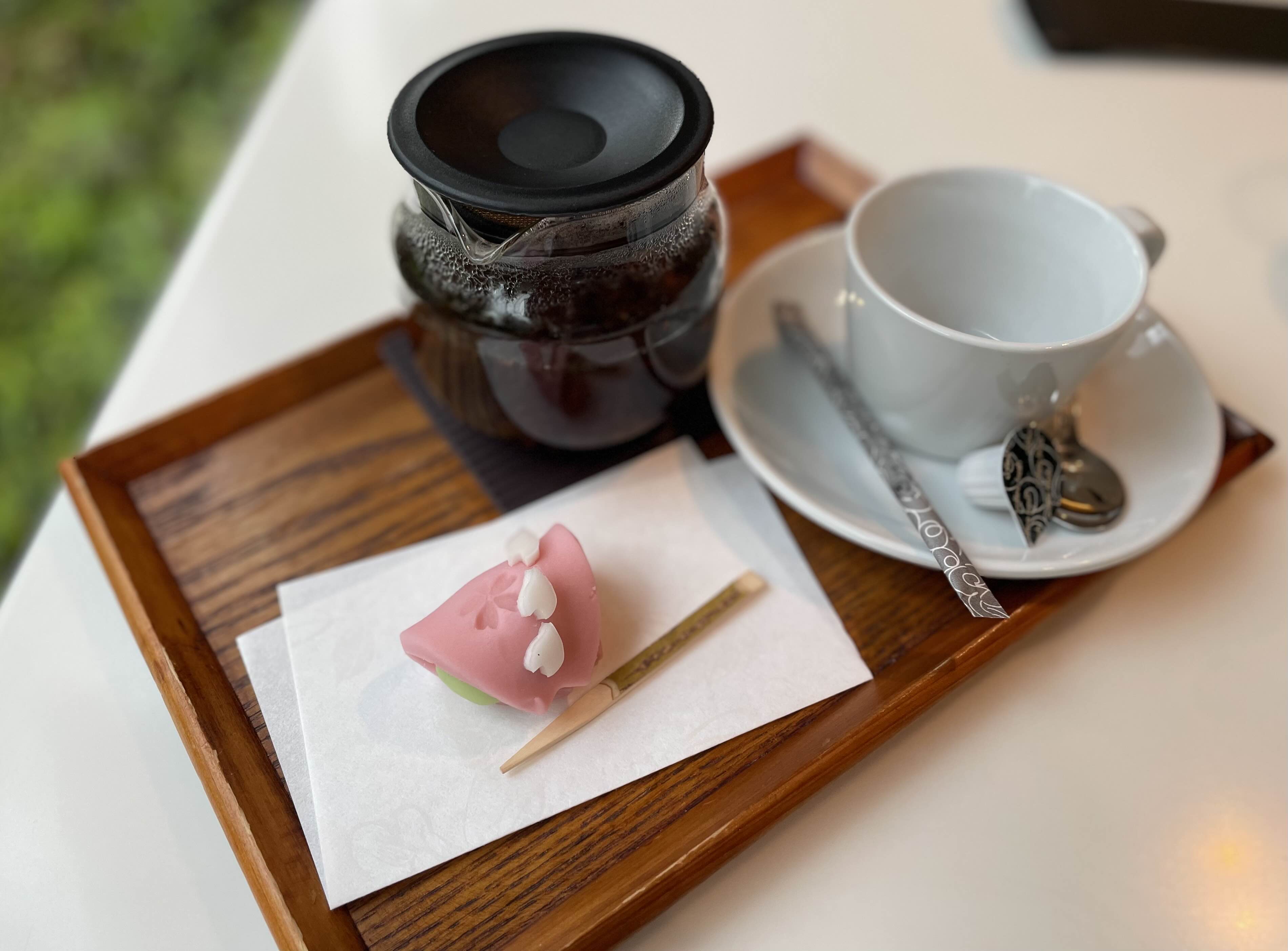 구글 지도에서 동백꽃(=츠바키) 화과자를 보고 갔는데 현재는 특별전 진행 중이라 해당 전시회를 주제로 한 화과자들만 있어 조금 아쉬웠다. 오전에 말차랑 화과자를 같이 먹어서, 오후엔 홍차를 택했는데 홍차랑 화과자도 은근히 잘 어울렸다.