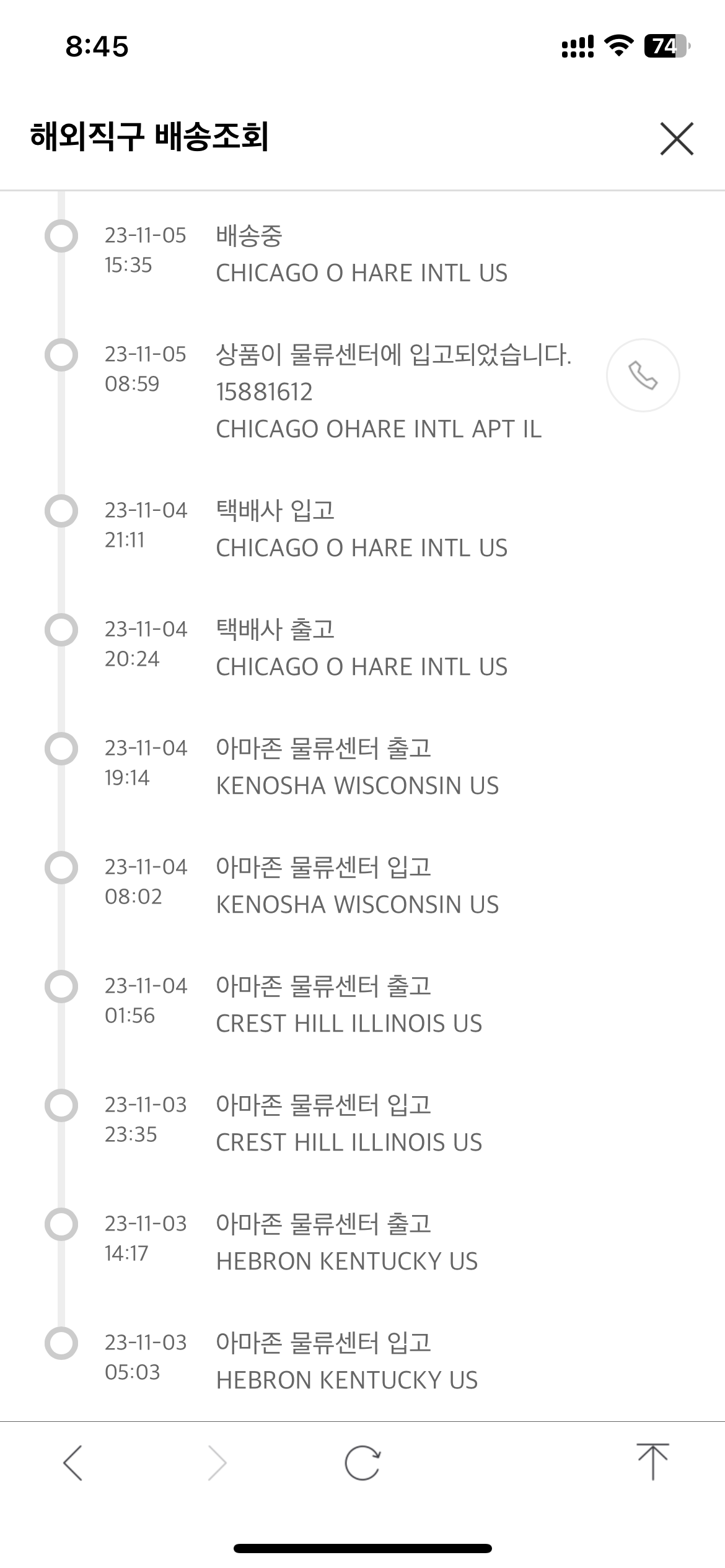 시카고 오헤어 공항엔 LA만큼 인천공항으로 오는 비행기가 자주 있지 않아서 그런지, 내 그릇은 11월 5일에 오헤어 공항에 도착하고도 11월 8일에서야 비행기를 탔고, 11월 9일에 통관이 완료된 뒤, 11월 10일, 드디어 우리집에 도착했다.