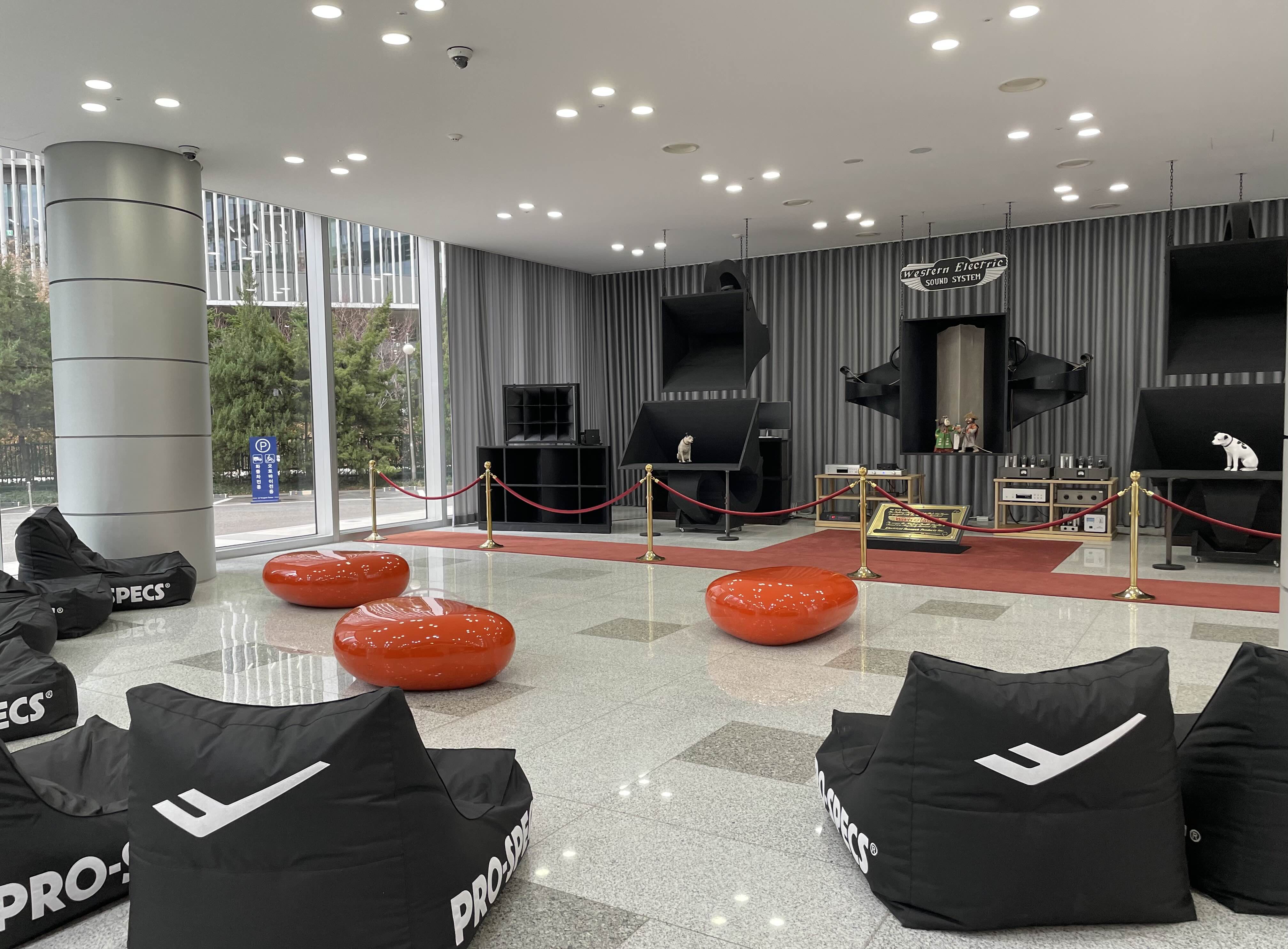 최근 LS타워에 갔을 땐, 오디오 앞에 전에는 없었던 프로스펙스 빈백이 생겨 있어서 새삼스레 사진을 찍어봤다.